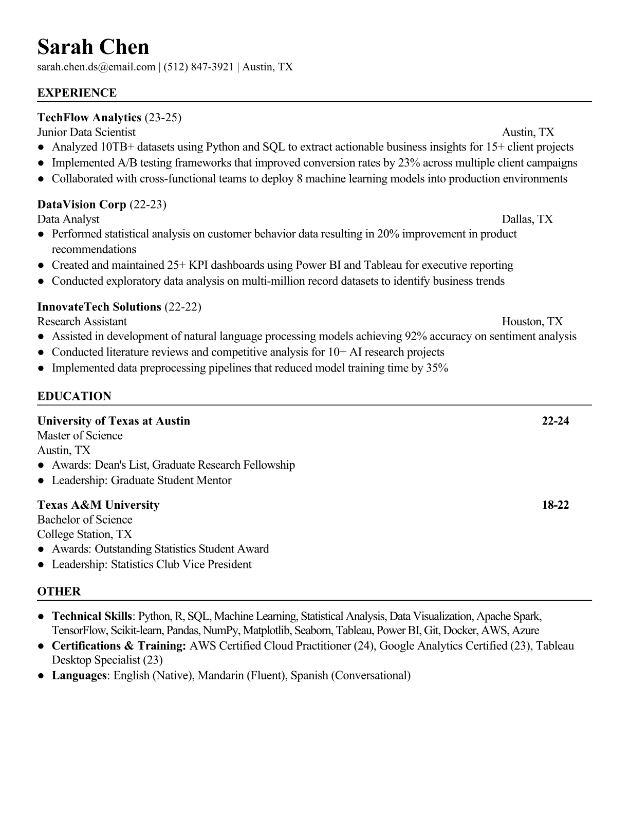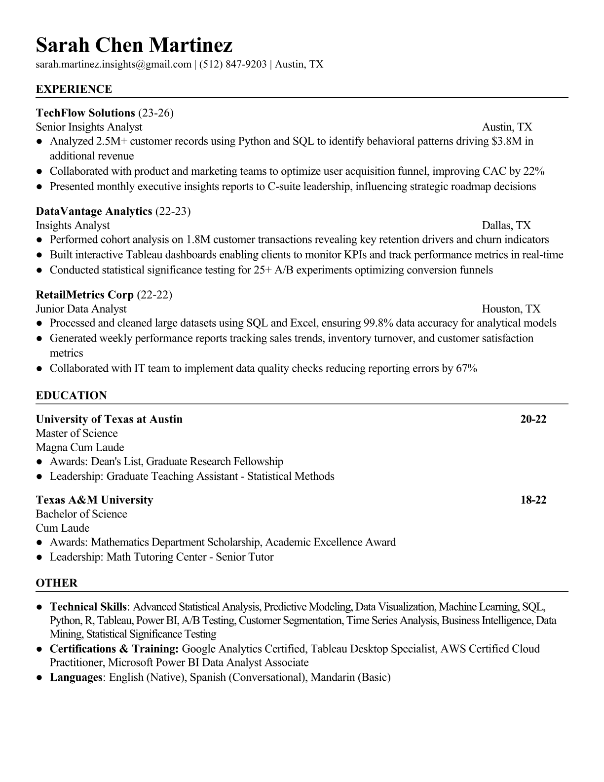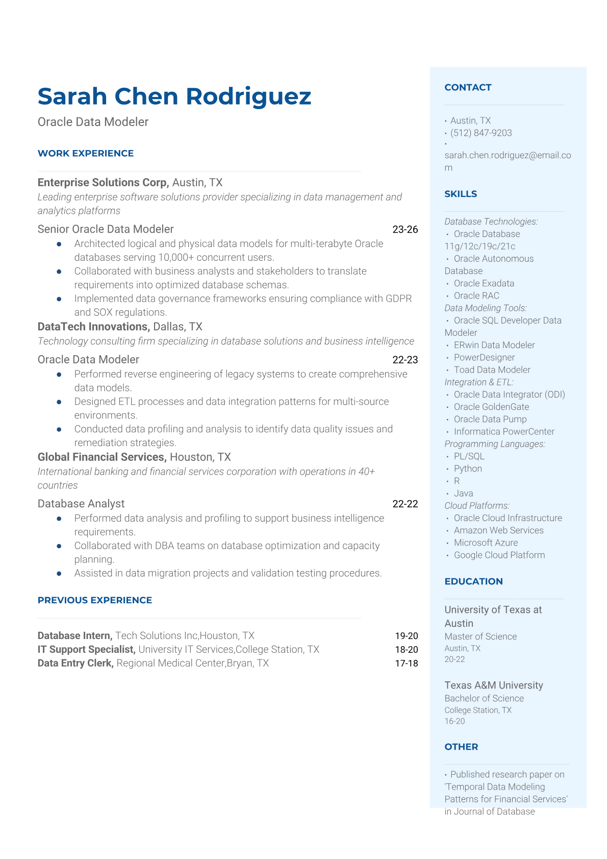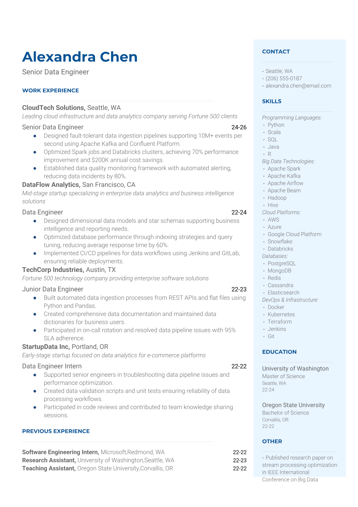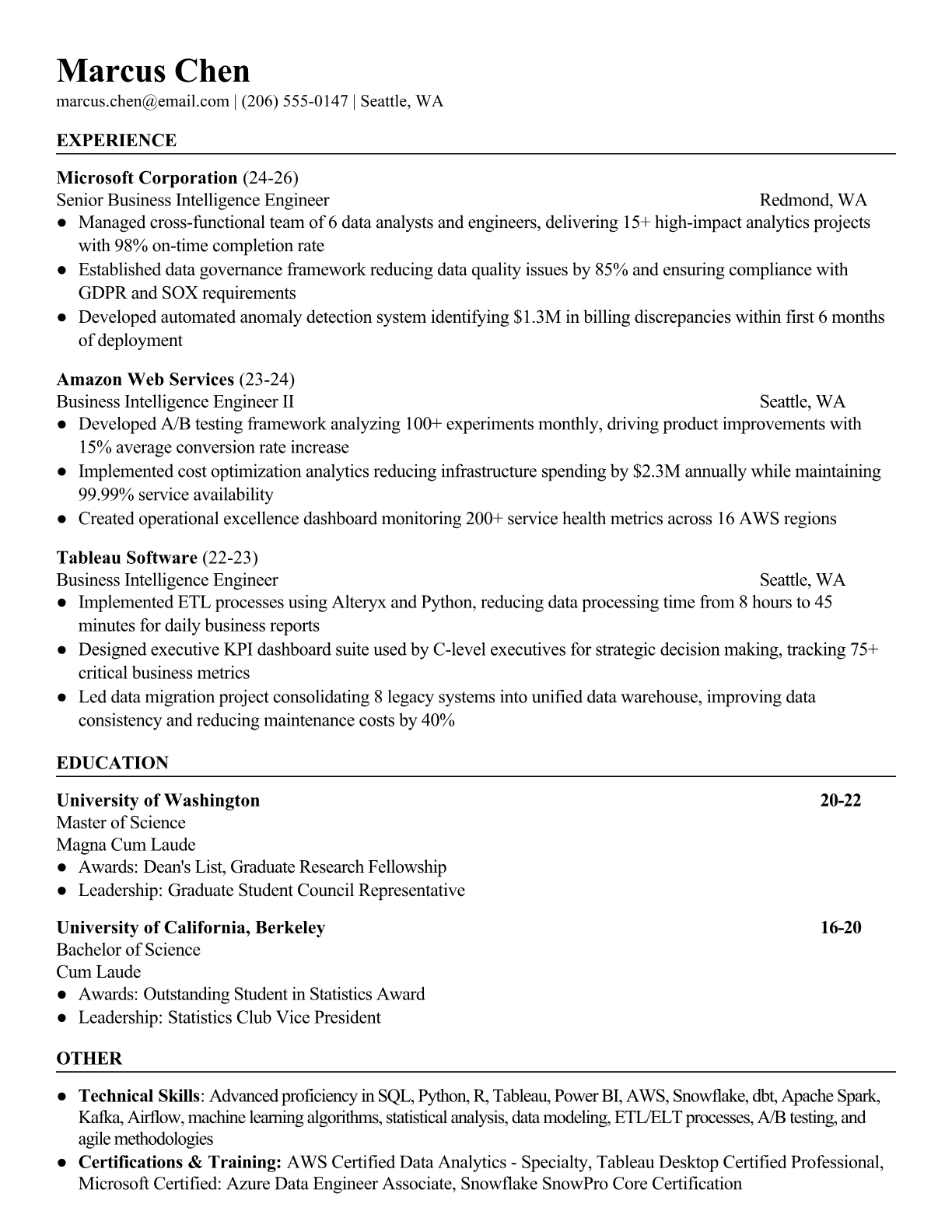 Browse data and analytics resume examples and ATS-optimized templates for data analysts, data engineers, BI specialists and more. Highlight SQL, Python, dashboards and business impact to stand out with recruiters.