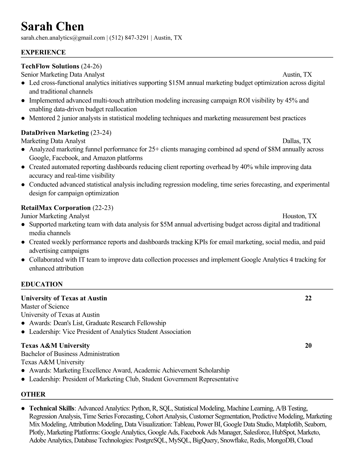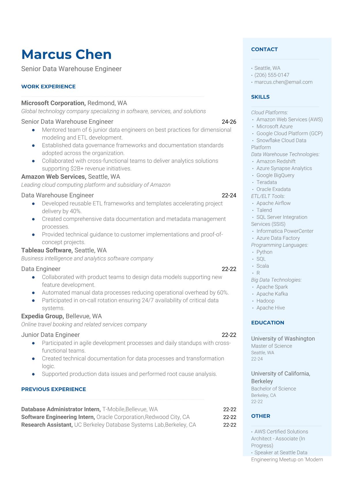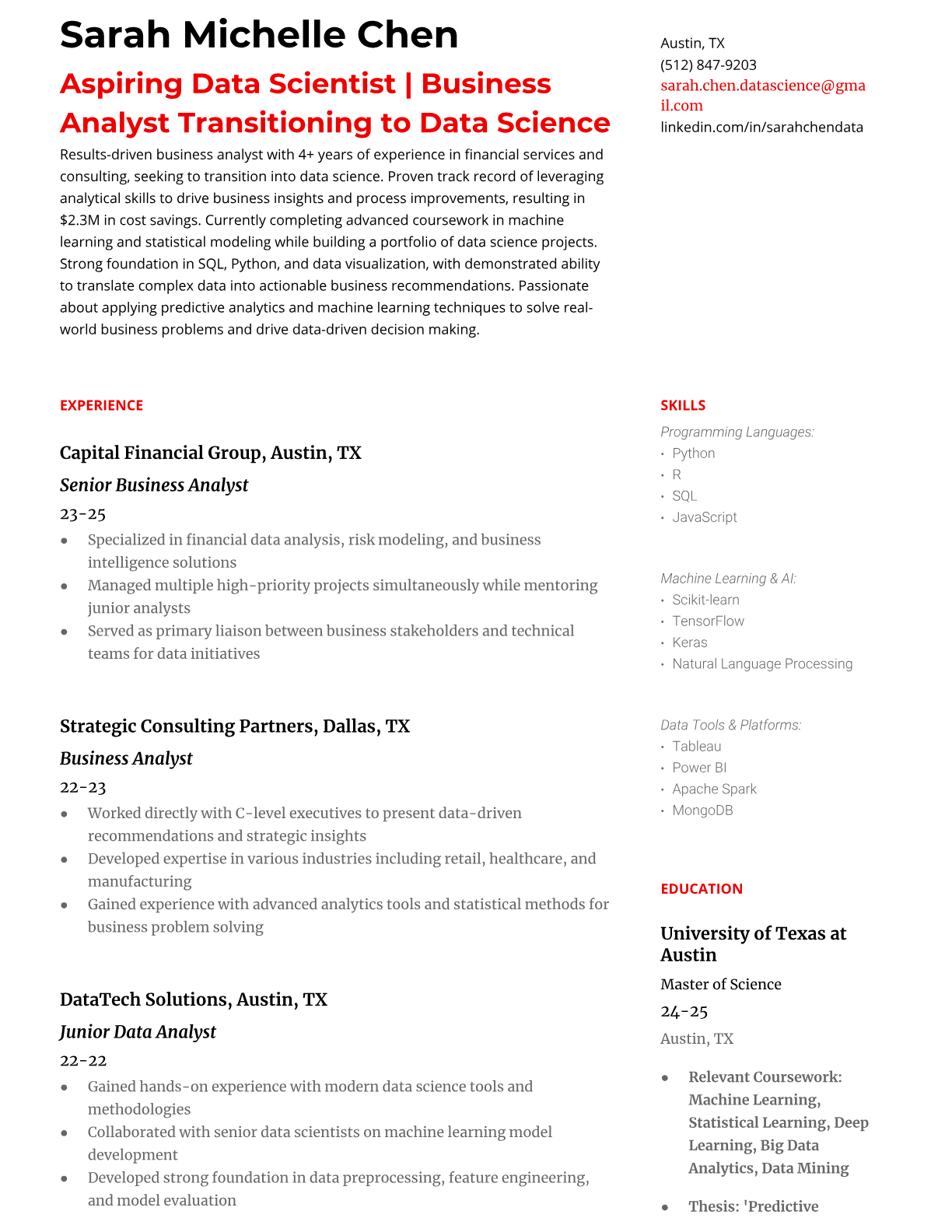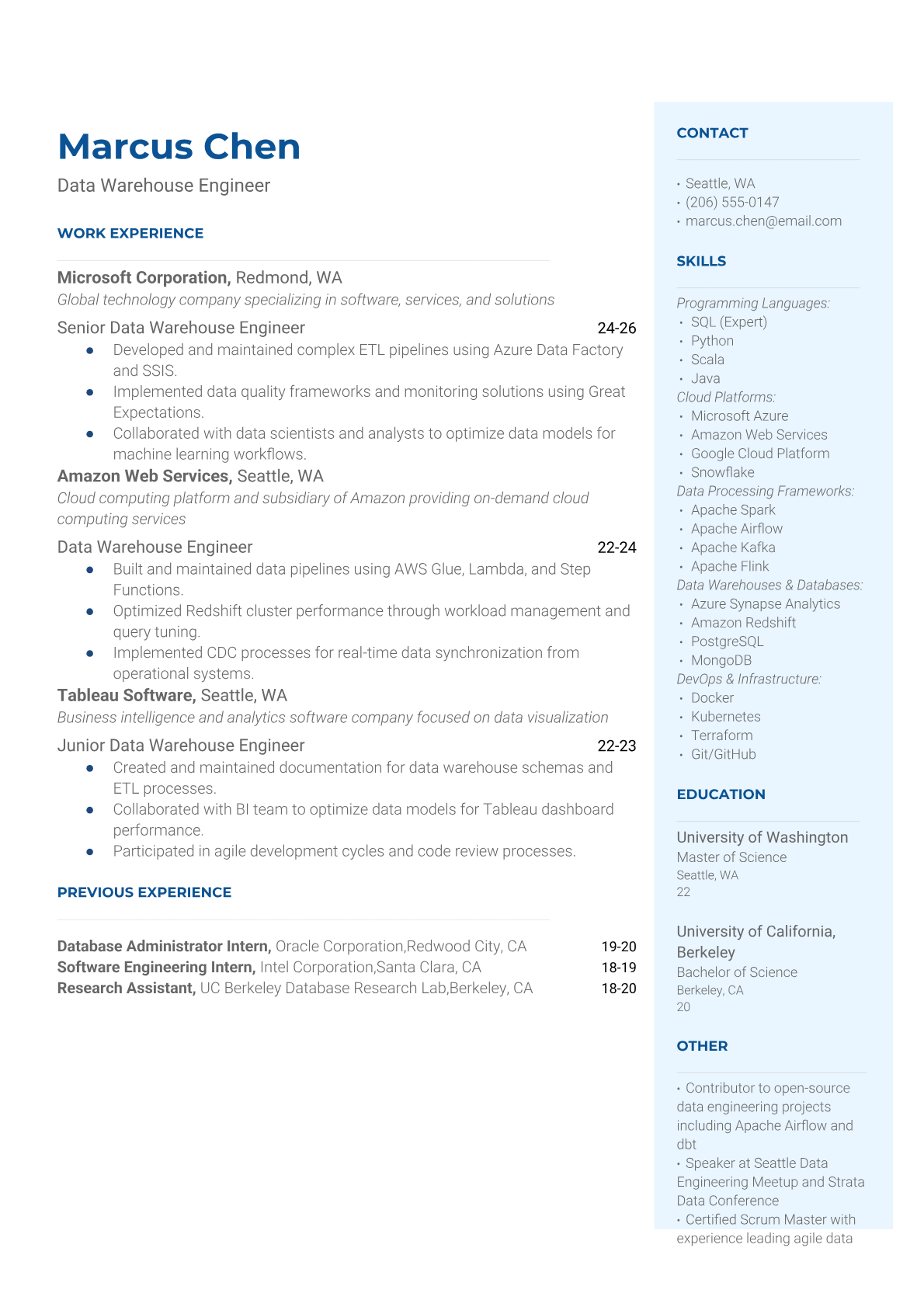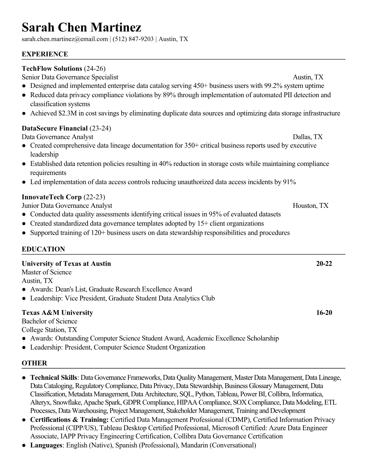 Browse data and analytics resume examples and ATS-optimized templates for data analysts, data engineers, BI specialists and more. Highlight SQL, Python, dashboards and business impact to stand out with recruiters.