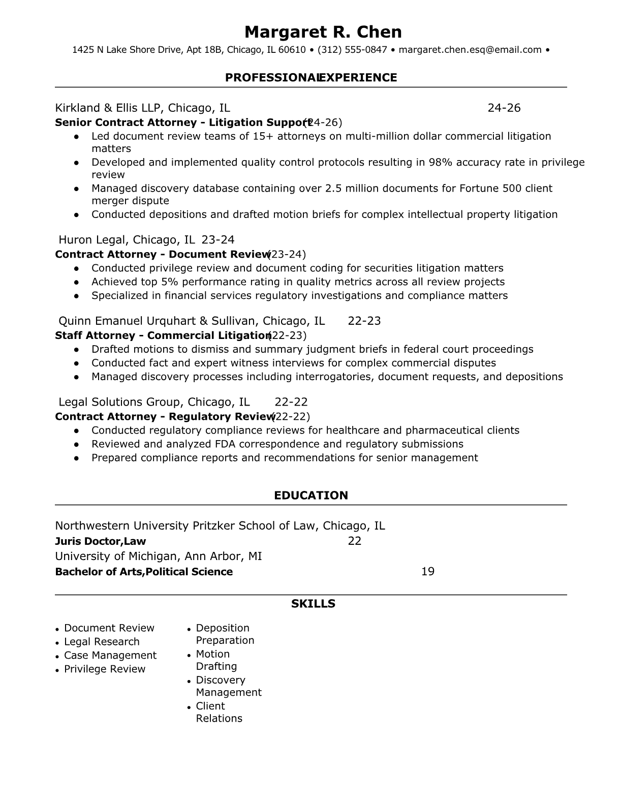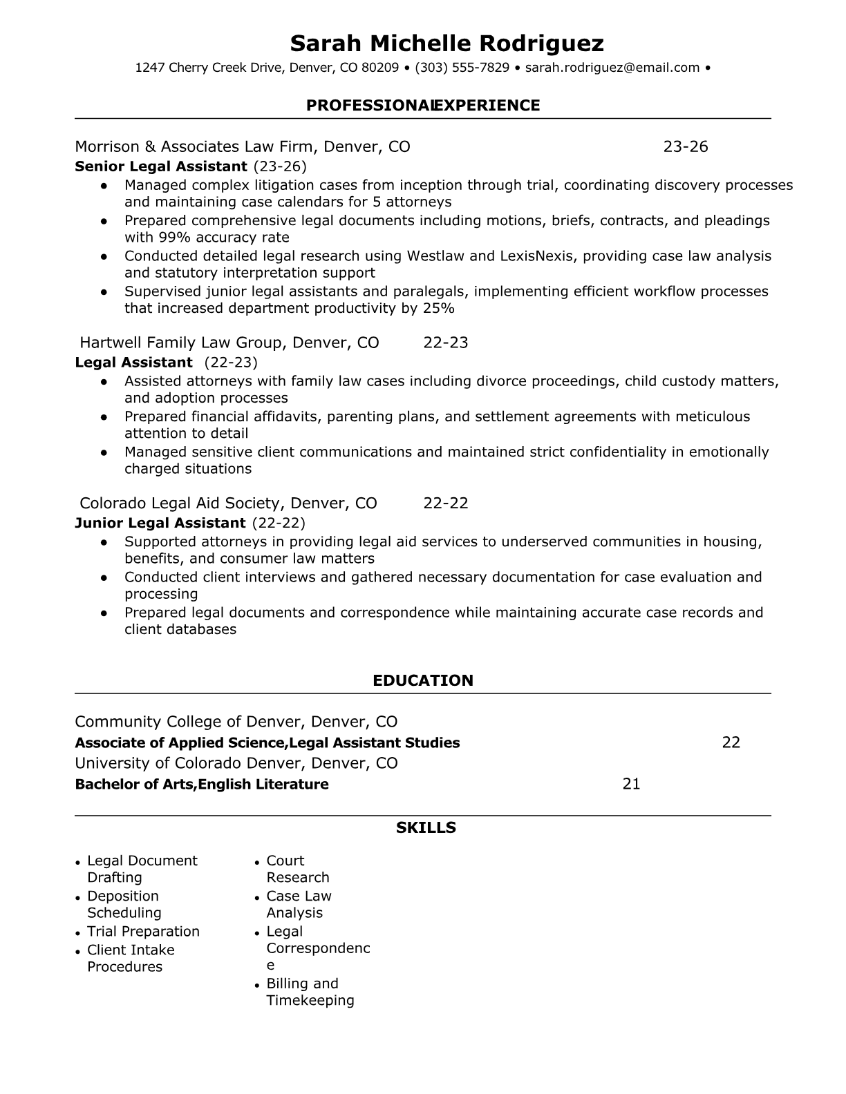 View legal resume examples and conservative, ATS-compliant templates for attorneys, paralegals and legal assistants. Highlight practice areas, case experience and compliance expertise with clear structure.
