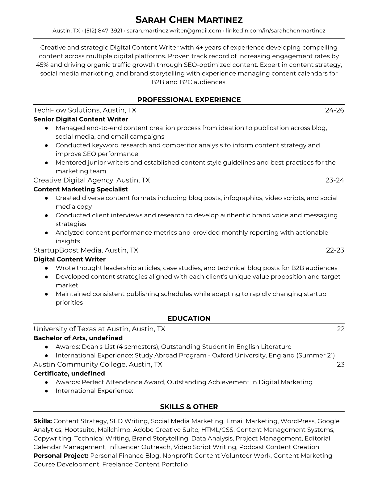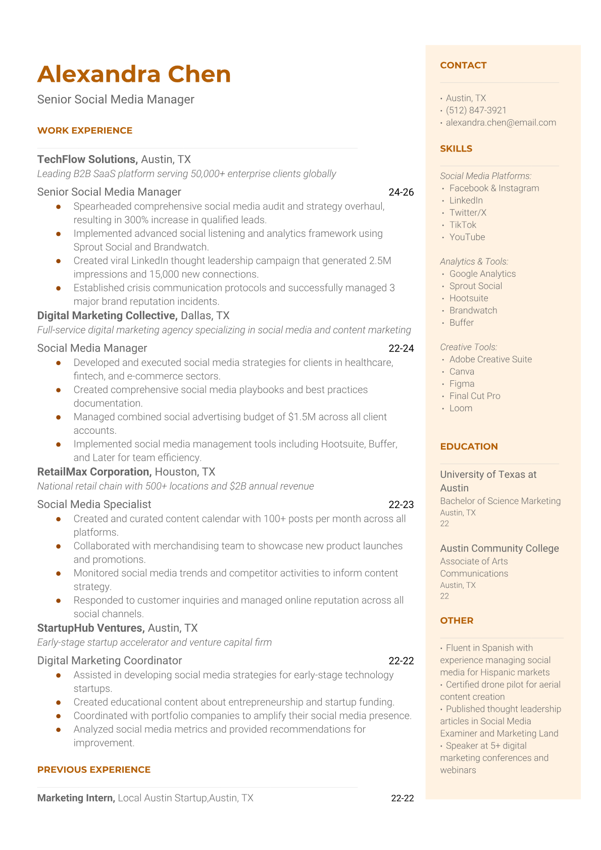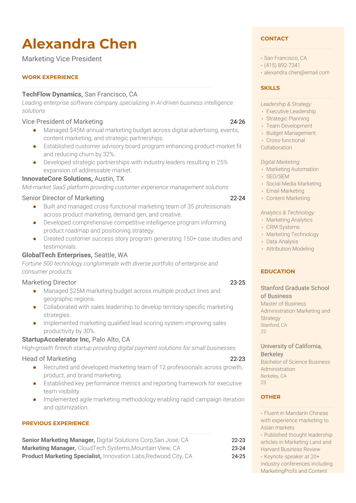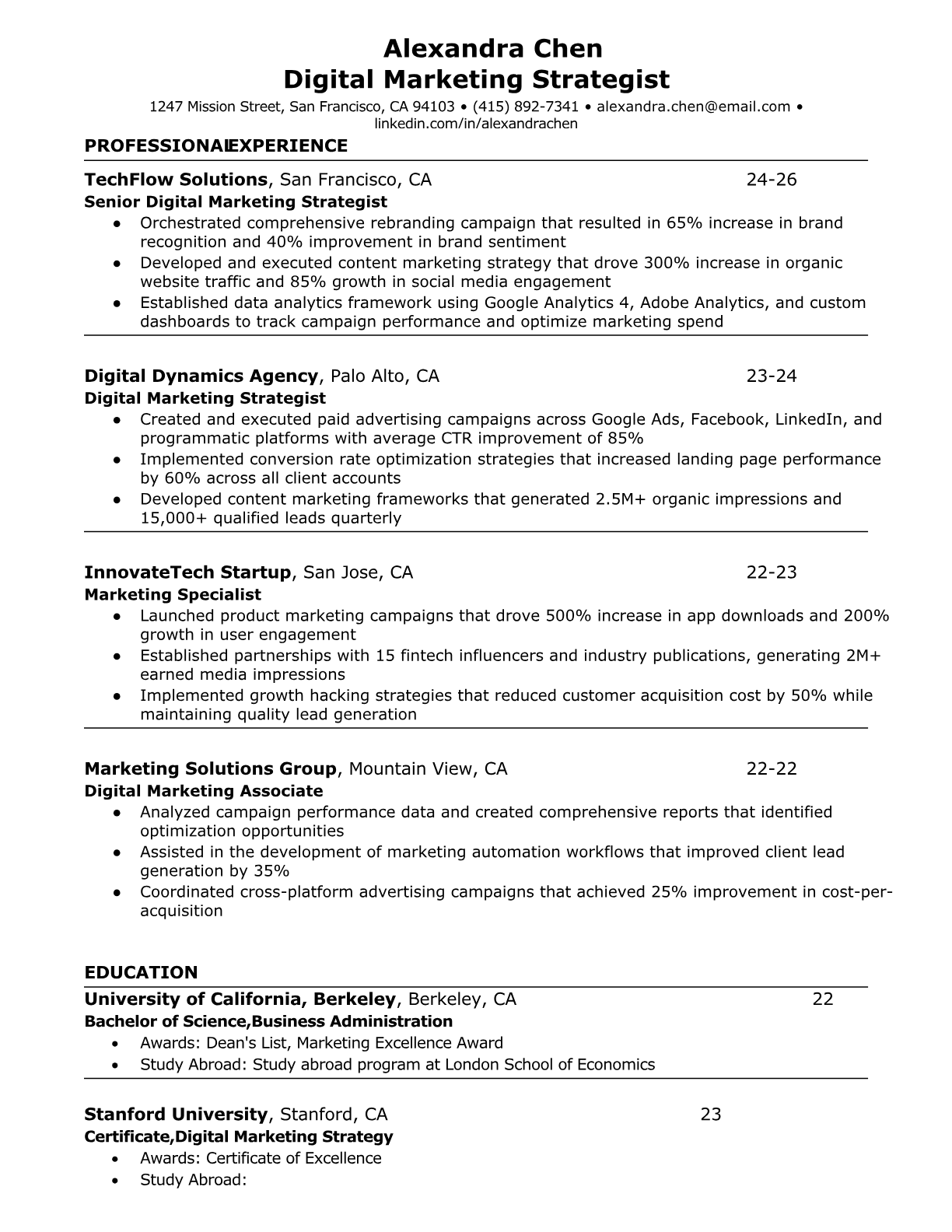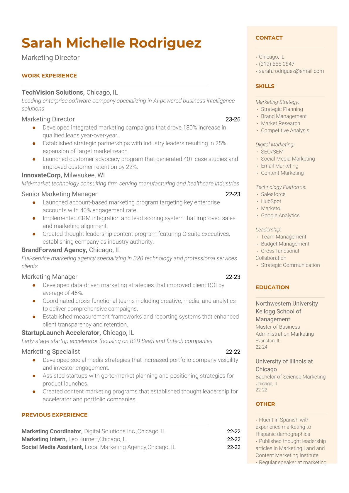 Browse marketing resume examples and modern templates for digital, content, growth and brand marketers. Emphasize campaign results, acquisition metrics and cross-channel strategy in an ATS-friendly format.