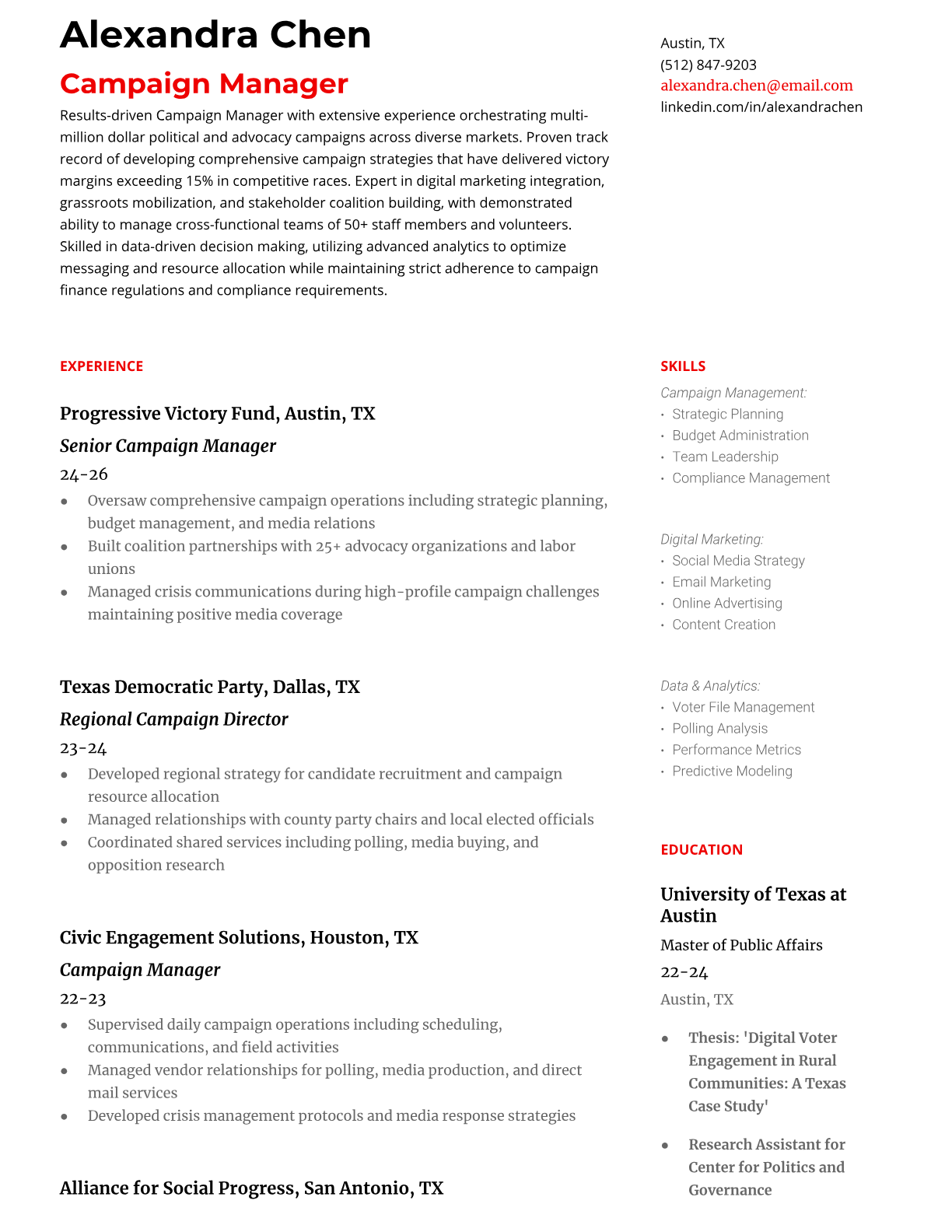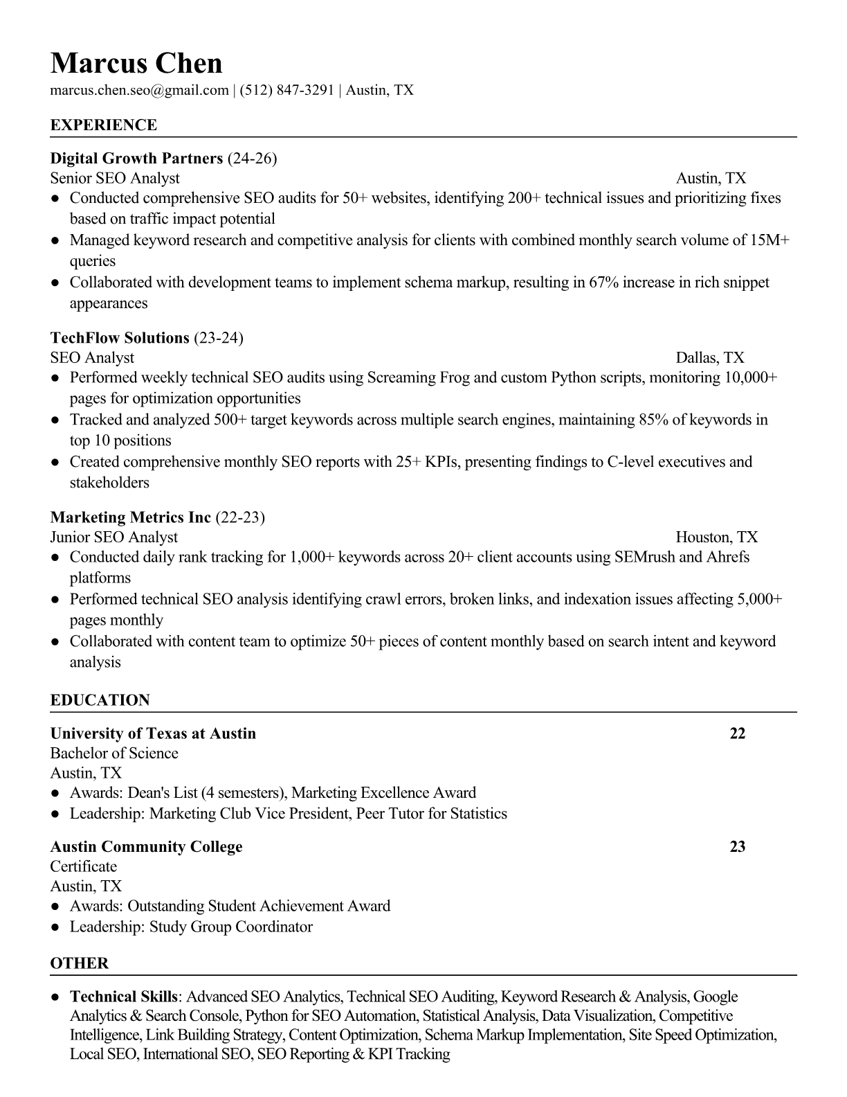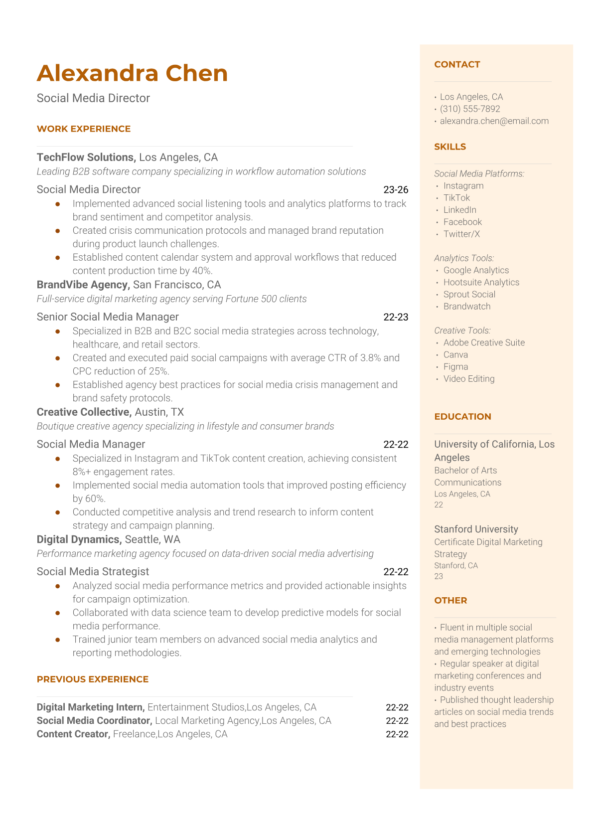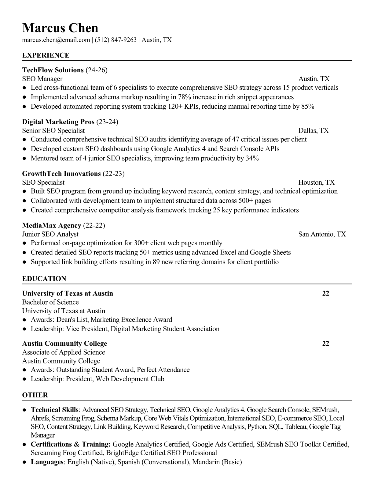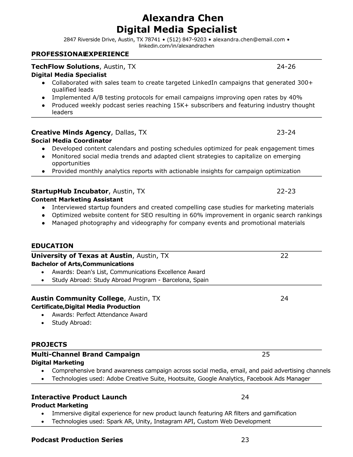Browse marketing resume examples and modern templates for digital, content, growth and brand marketers. Emphasize campaign results, acquisition metrics and cross-channel strategy in an ATS-friendly format.
