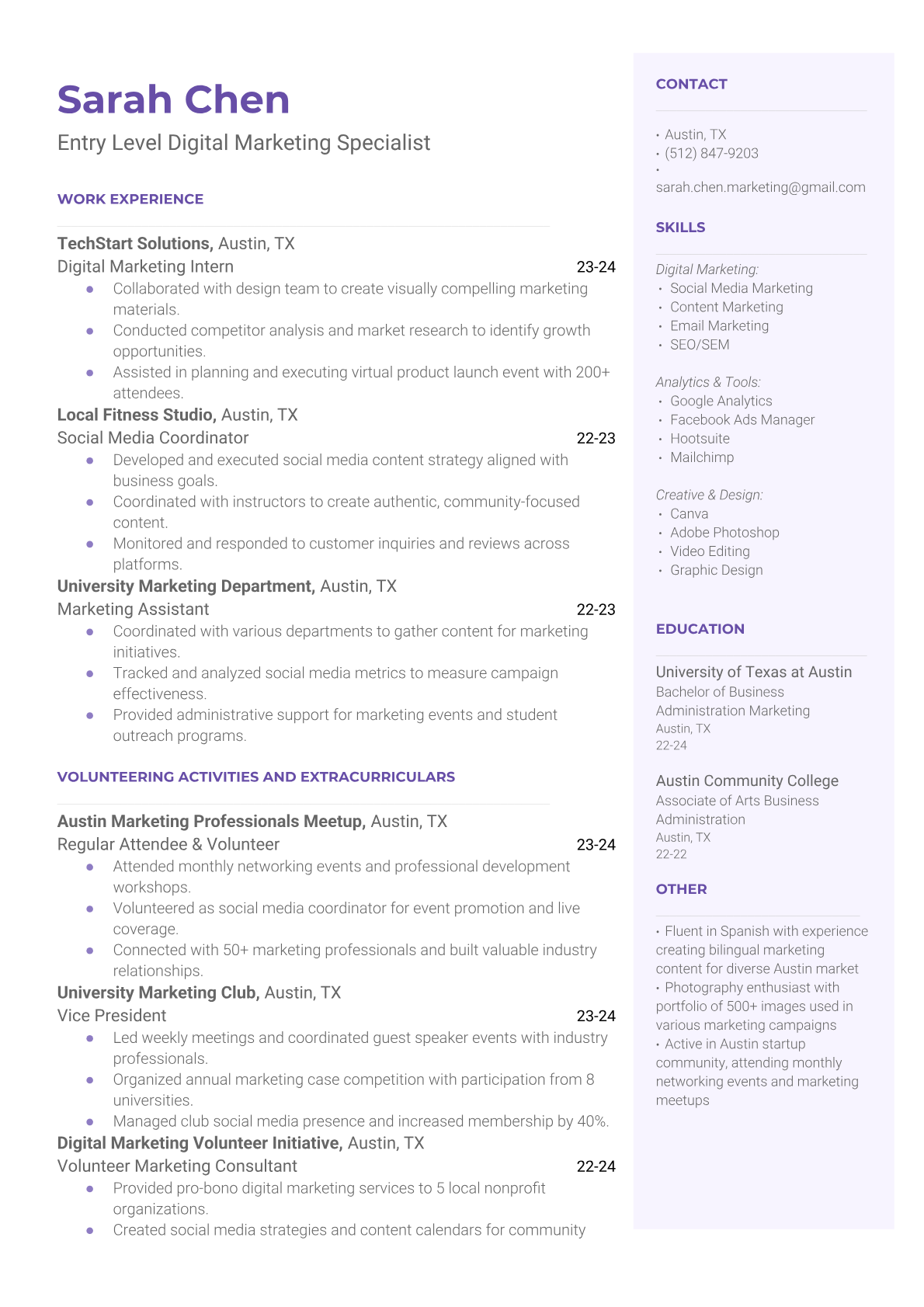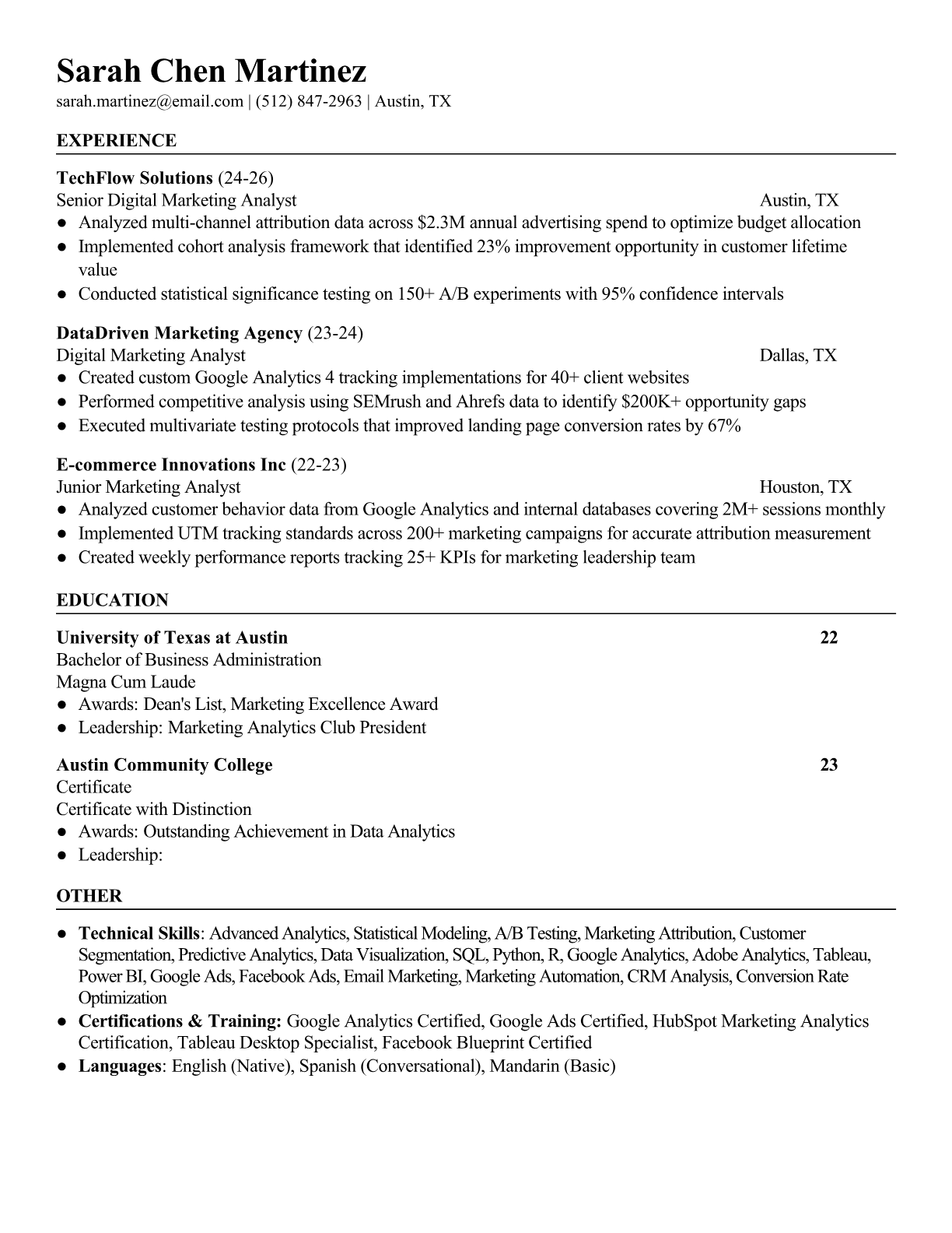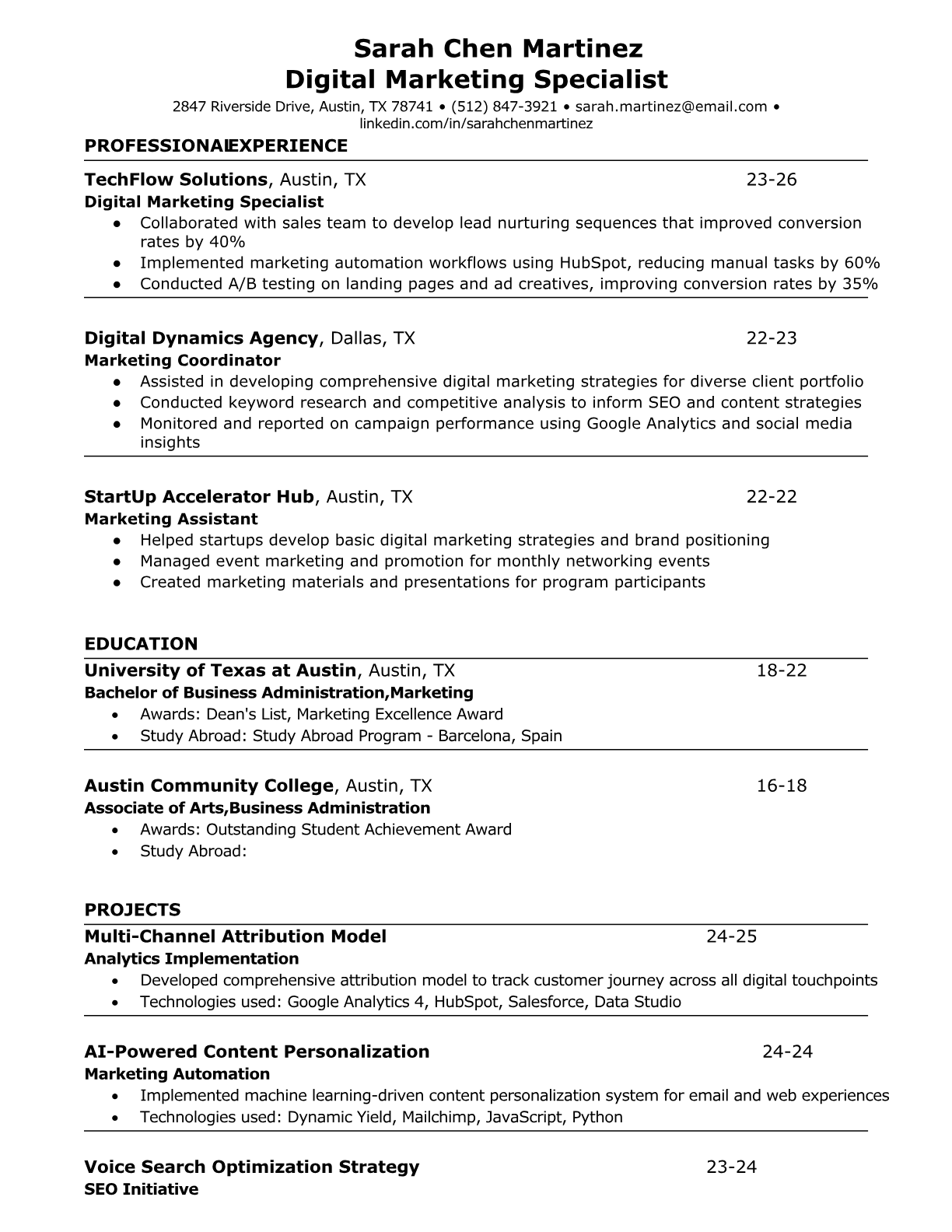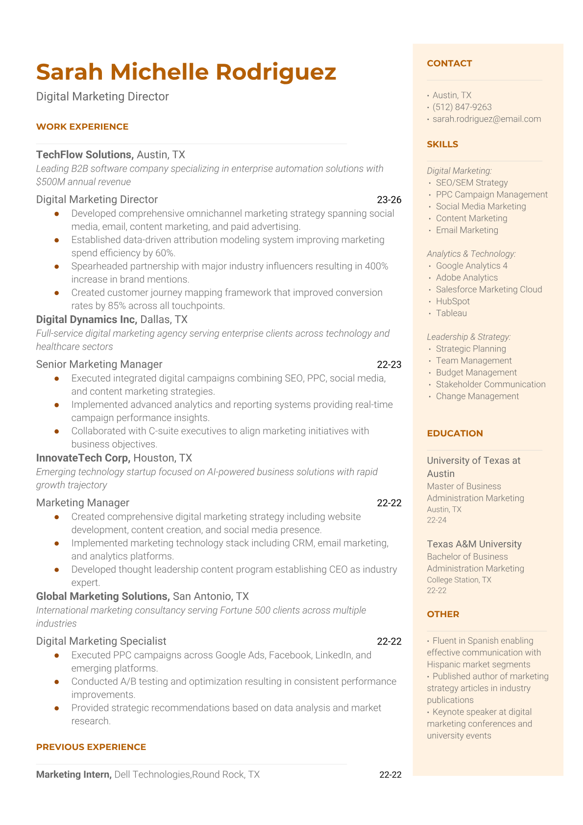 Expert digital marketing resume examples and templates. Highlight your SEO, PPC, analytics, and online campaign management expertise.