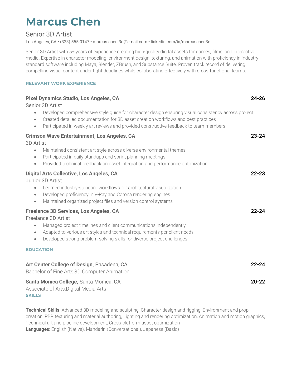 3D Artist Resume Templates - Creative & Technical Formats