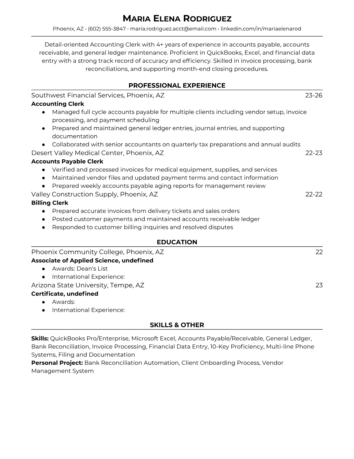 Accounting Clerk Resume Templates - ATS-Optimized for Finance Roles