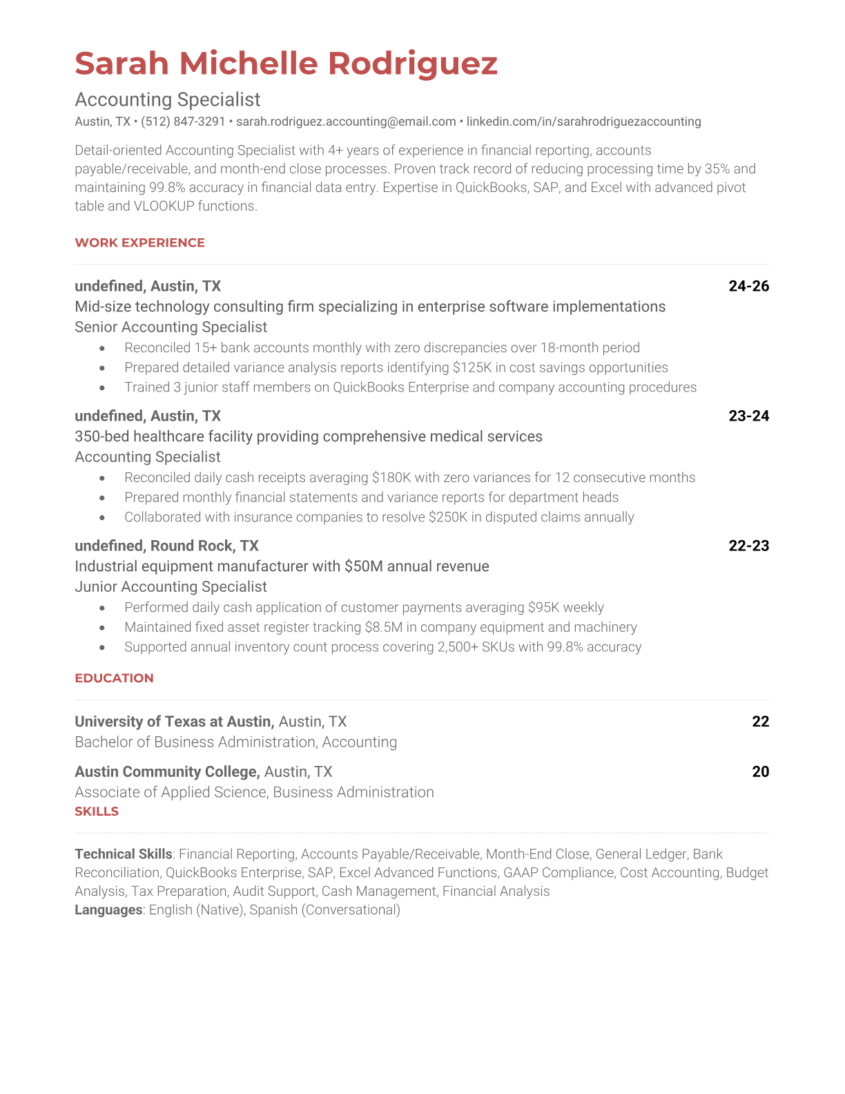 Accounting Specialist Resume Templates - ATS-Optimized for Finance Roles