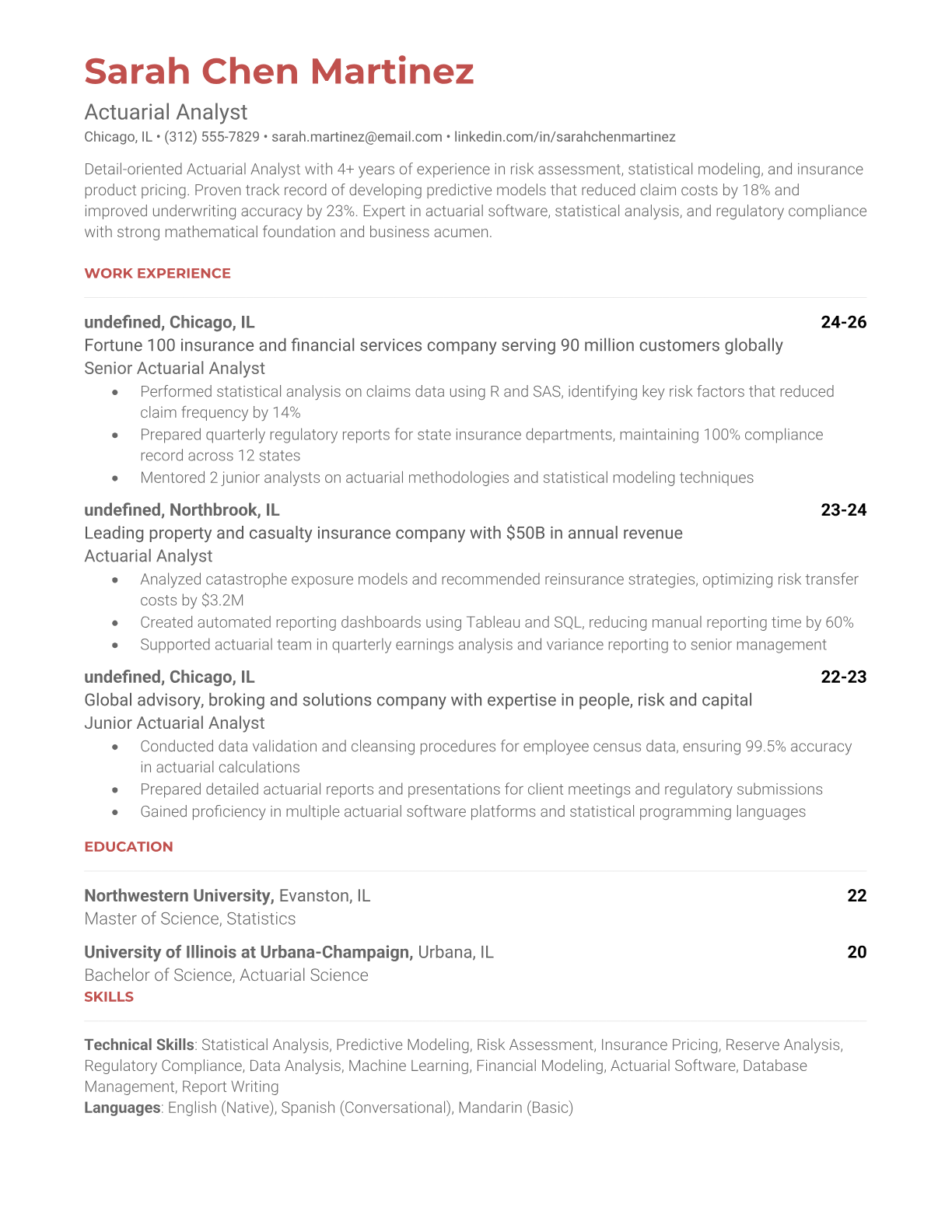 Actuarial Analyst Resume Templates - ATS-Optimized for Insurance & Finance