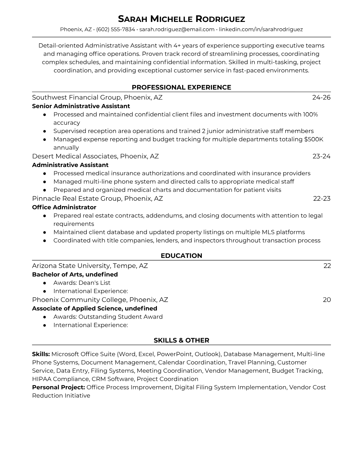 Administrative Assistant Resume Templates - ATS-Optimized