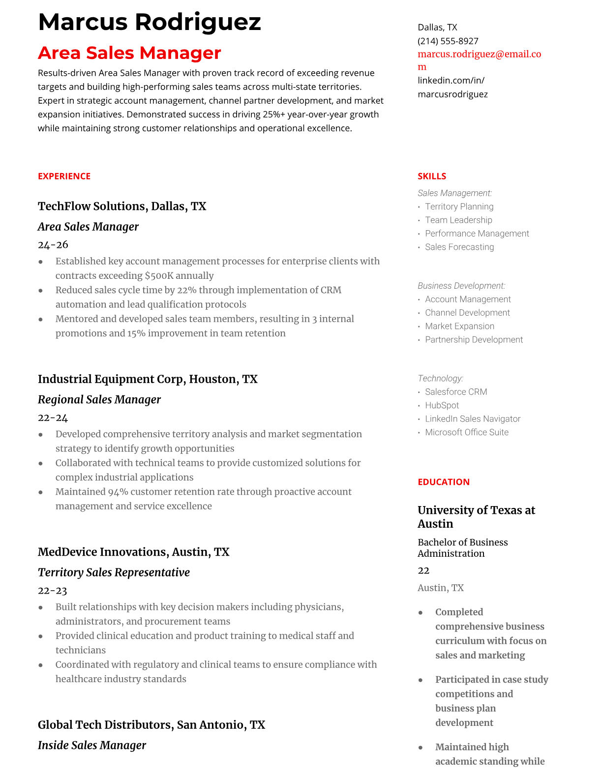 Area Sales Manager Resume Templates - ATS-Optimized