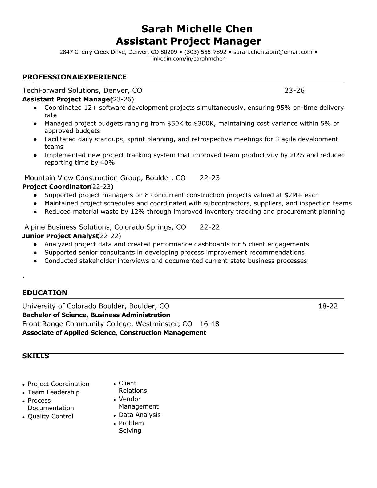 Professional Assistant Project Manager resume templates optimized for ATS systems. Choose from multiple formats designed for project coordination roles with built-in PM keywords and industry-specific formatting.