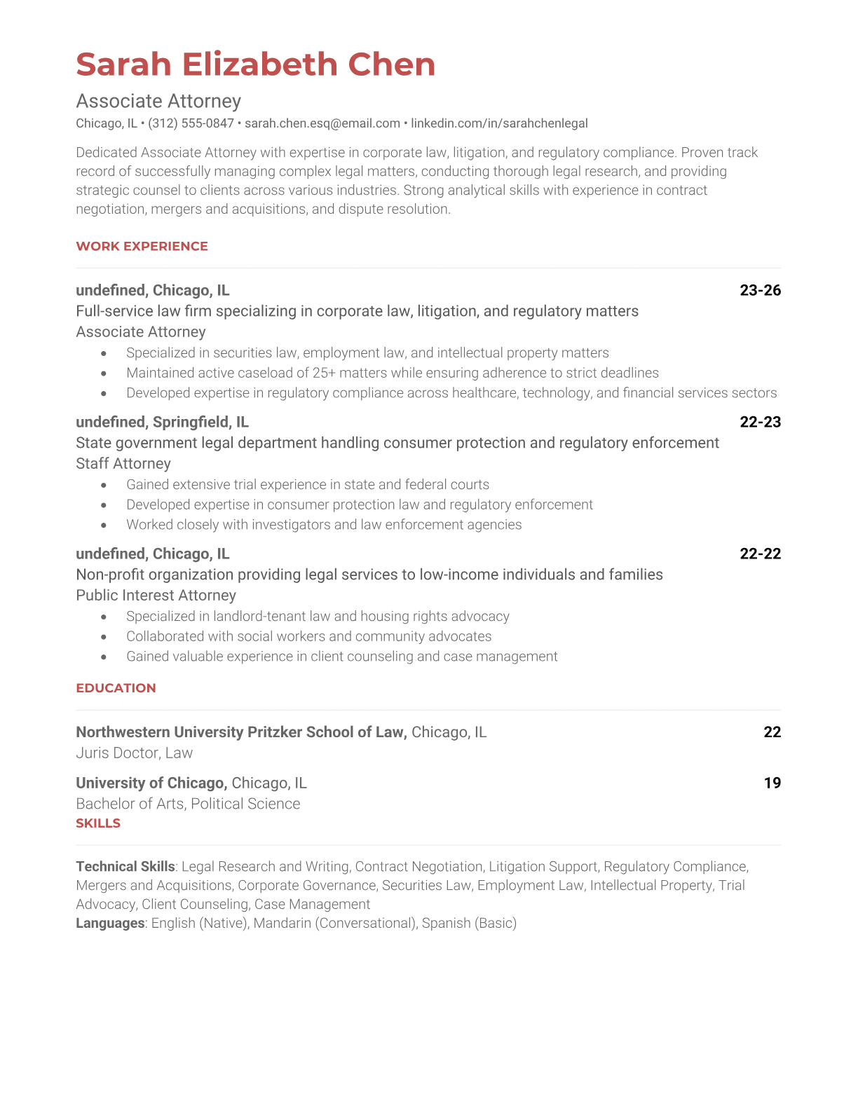 Choose from specialized Associate Attorney resume templates designed for law firms and legal departments. Professional and traditional formats optimized for legal recruiting ATS systems.
