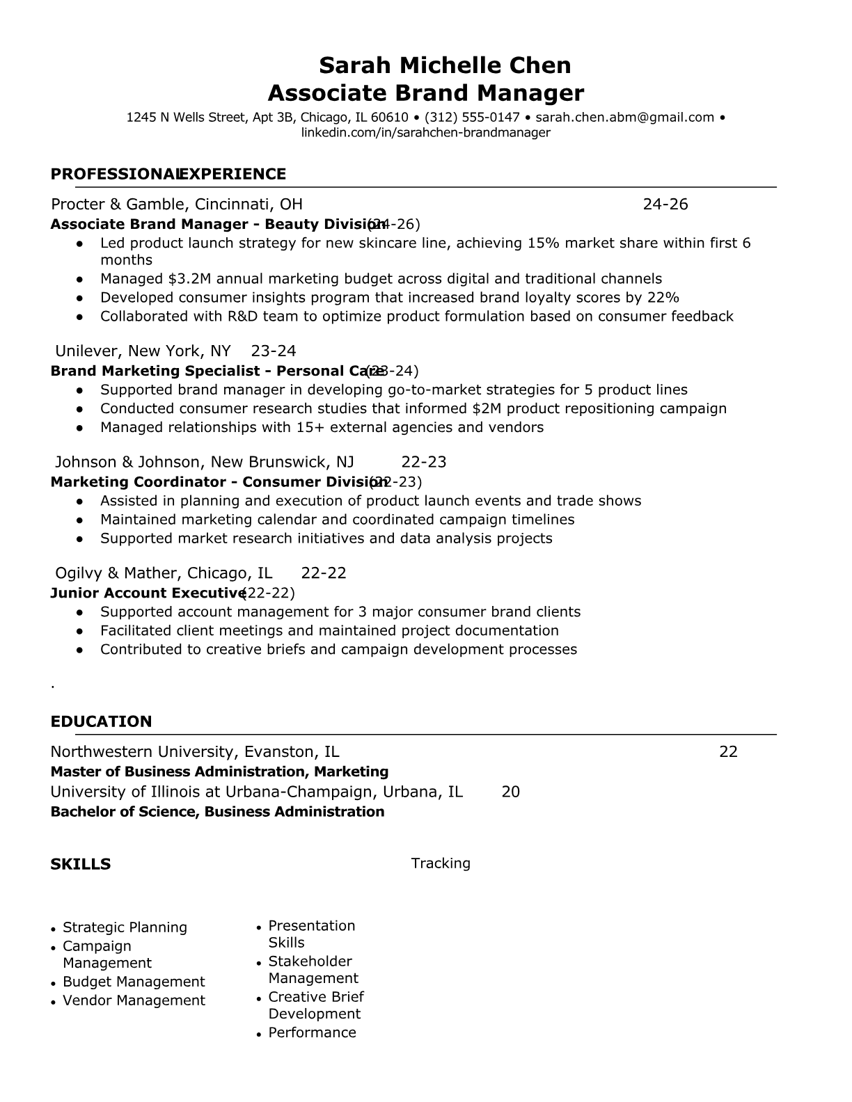 Professional Associate Brand Manager resume templates optimized for CPG companies and marketing agencies. Includes brand management keywords and marketing analytics formatting.
