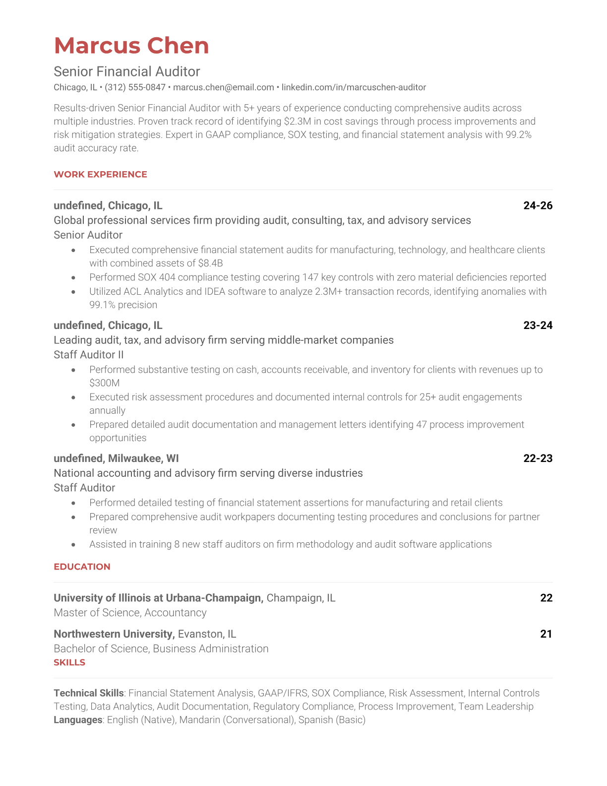Professional Auditor Resume Templates - ATS-Optimized