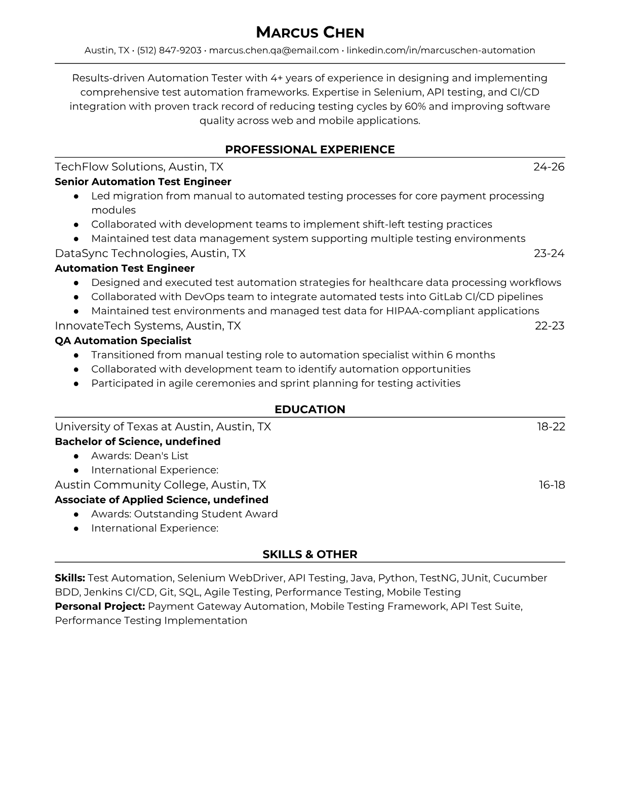 Automation Tester Resume Templates - ATS-Optimized for QA Roles