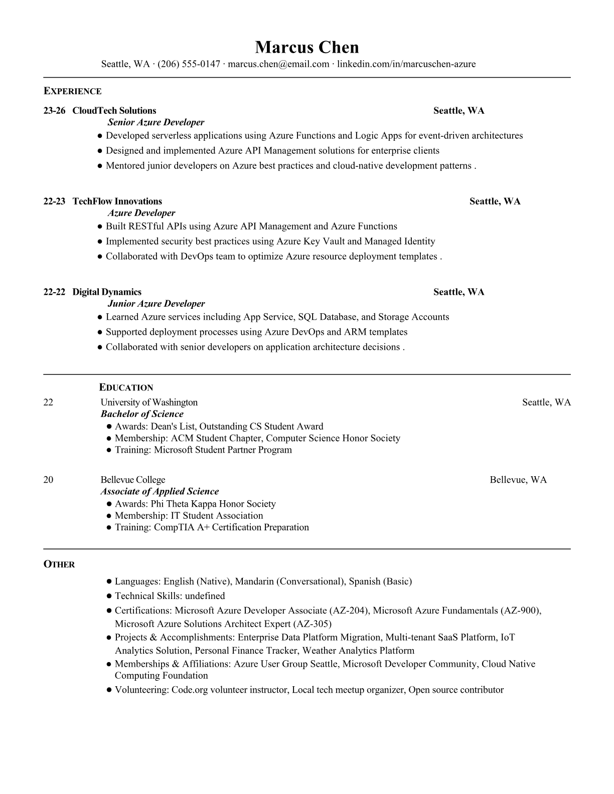 Professional Azure Developer resume templates optimized for Microsoft and enterprise ATS systems. Highlight your cloud development skills, Azure certifications, and technical expertise with our specialized templates.