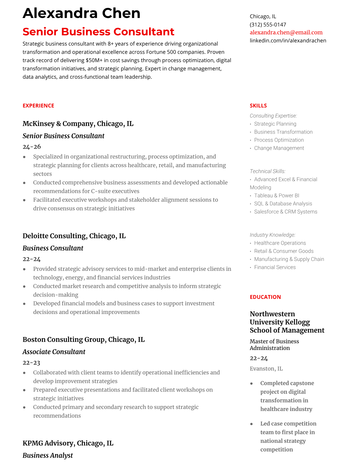 Business Consultant Resume Templates - ATS-Optimized for Consulting Roles