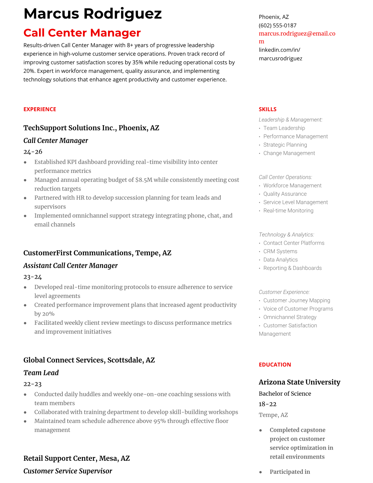 Call Center Manager Resume Templates - ATS-Optimized Formats