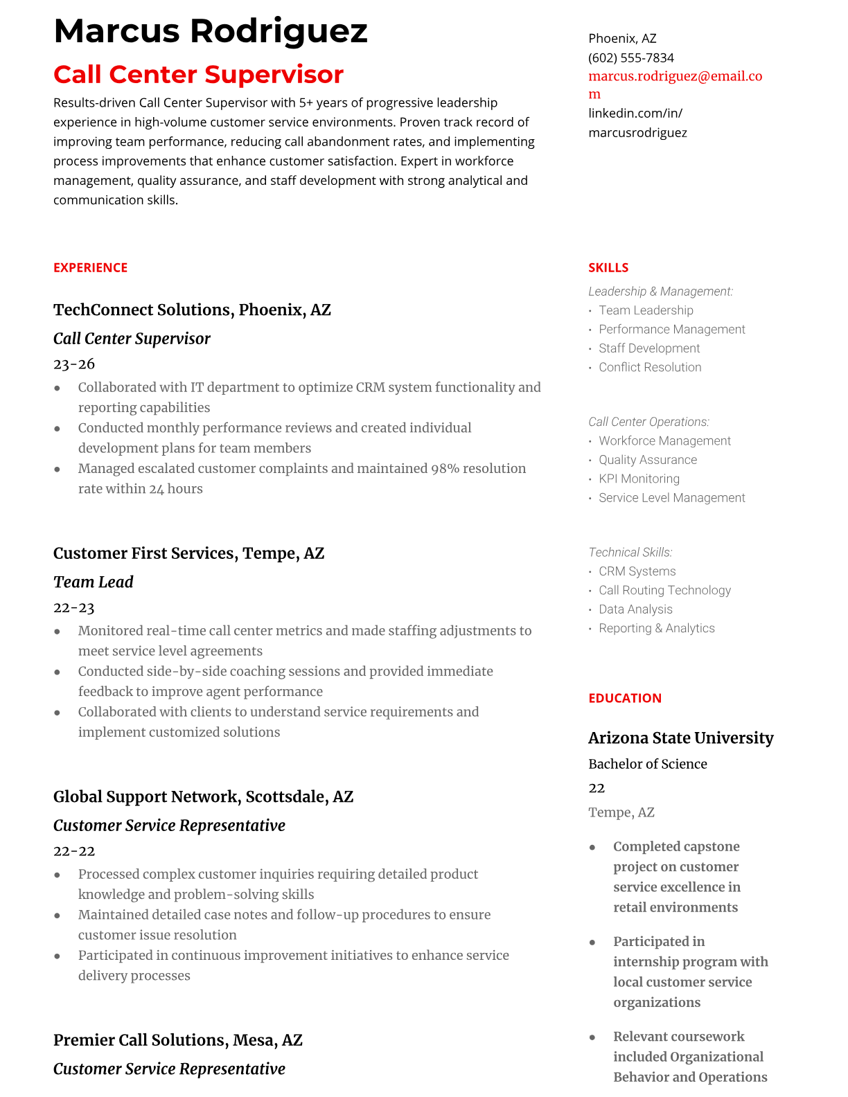 Call Center Supervisor Resume Templates - ATS-Optimized