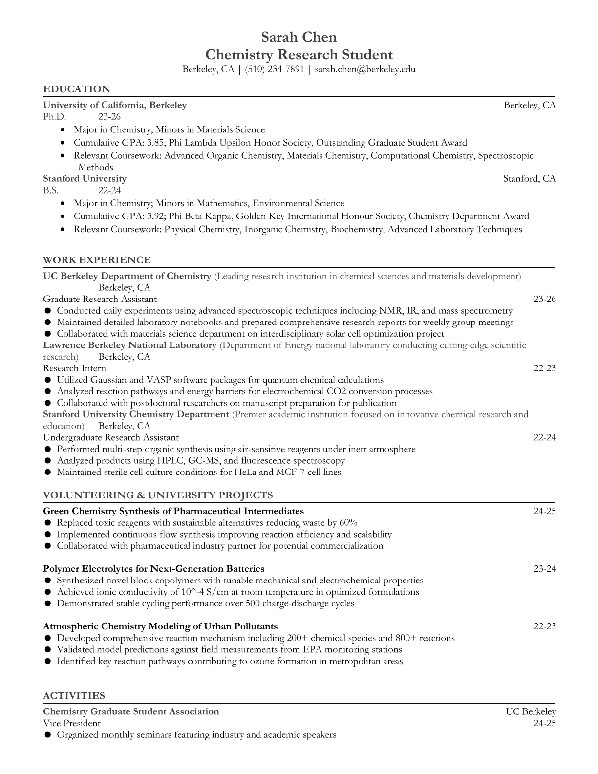 Chemistry Research Student Resume Templates - Academic & Research Optimized