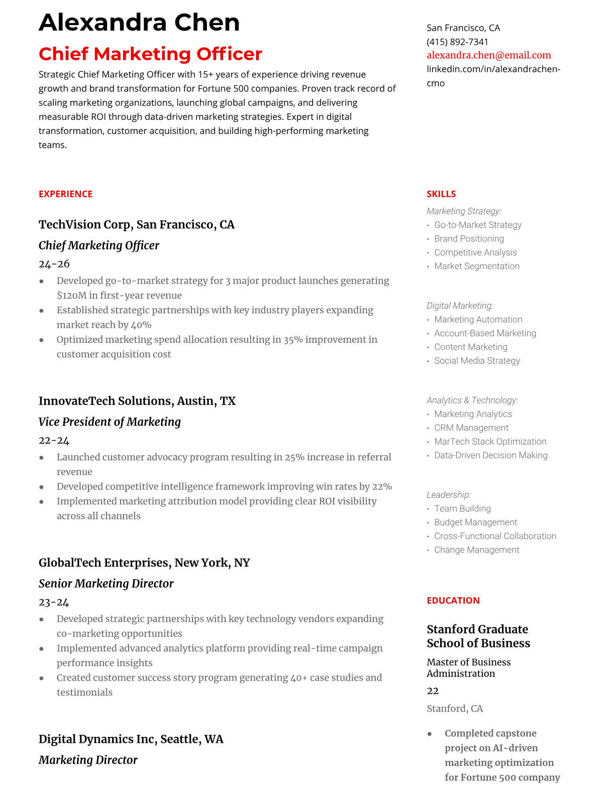 CMO Resume Templates - Chief Marketing Officer Resume Examples