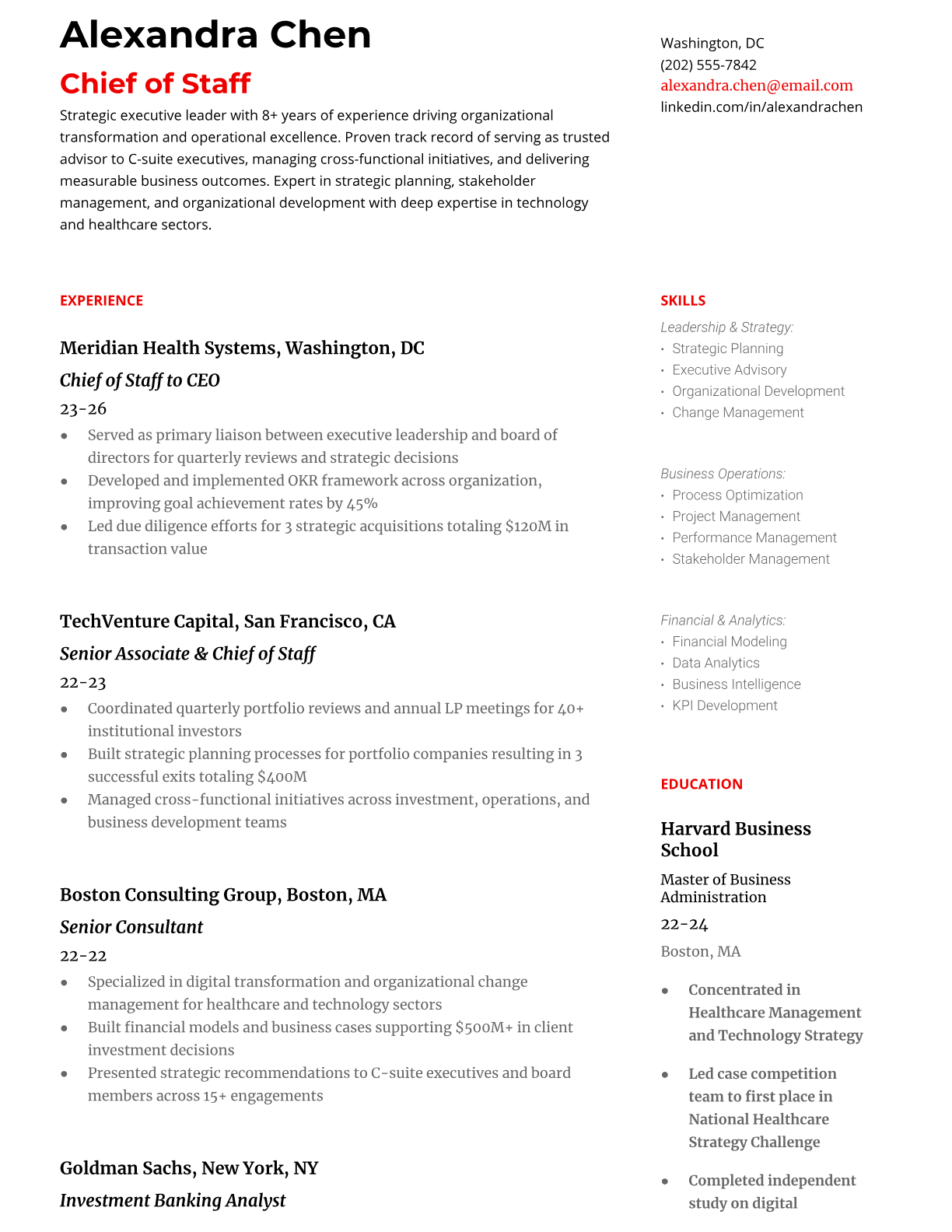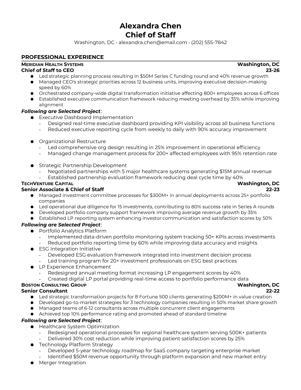 Chief of Staff Resume Templates - Executive Leadership Formats