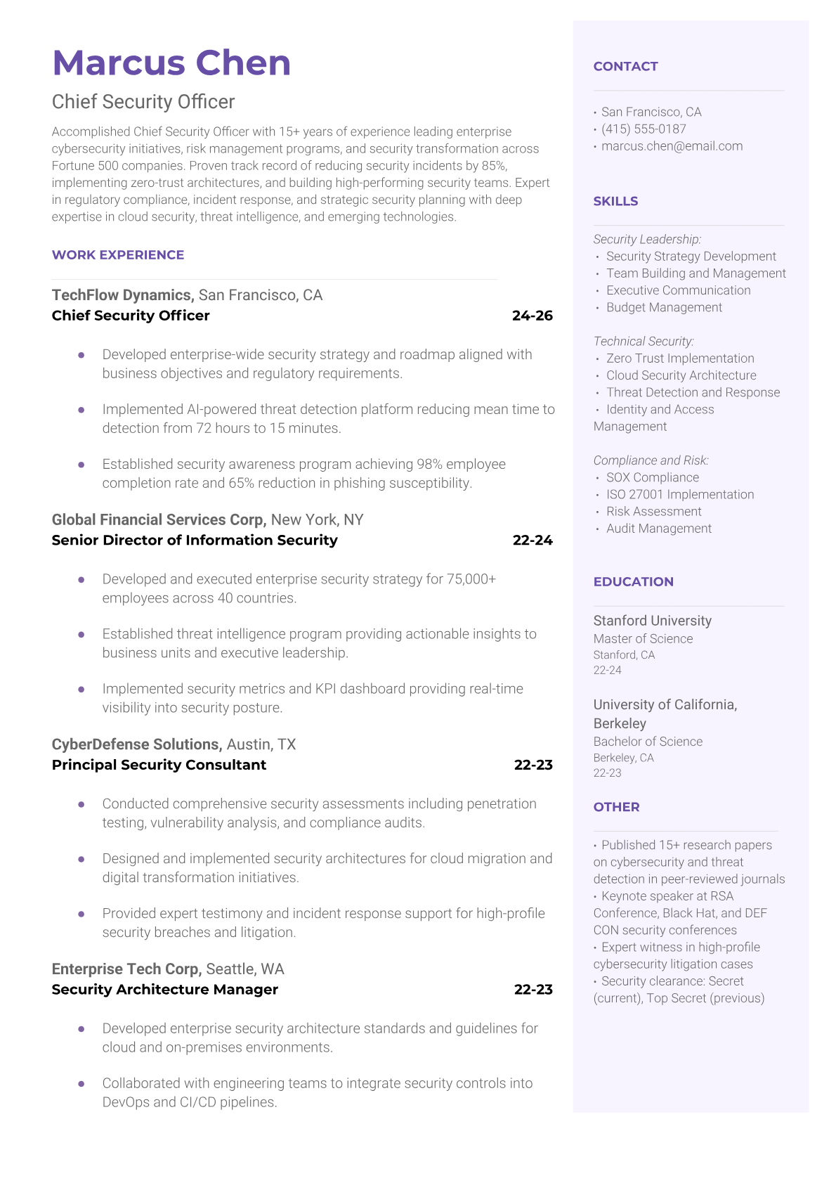 Chief Security Officer Resume Templates - Executive & Modern Formats