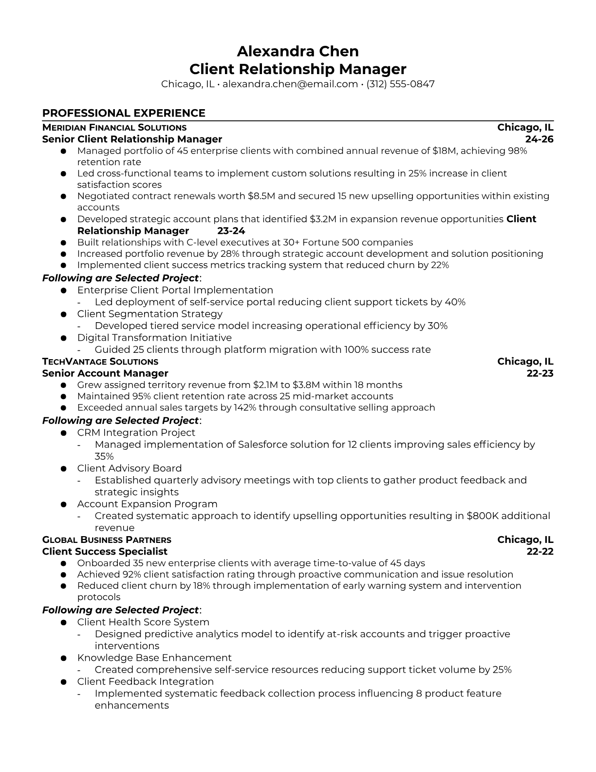 Client Relationship Manager Resume Templates - ATS Optimized