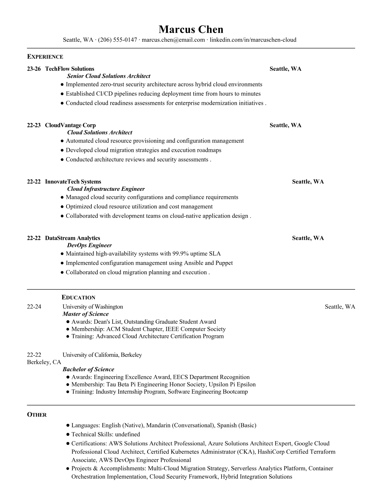 Cloud Solutions Architect Resume Templates - ATS Optimized
