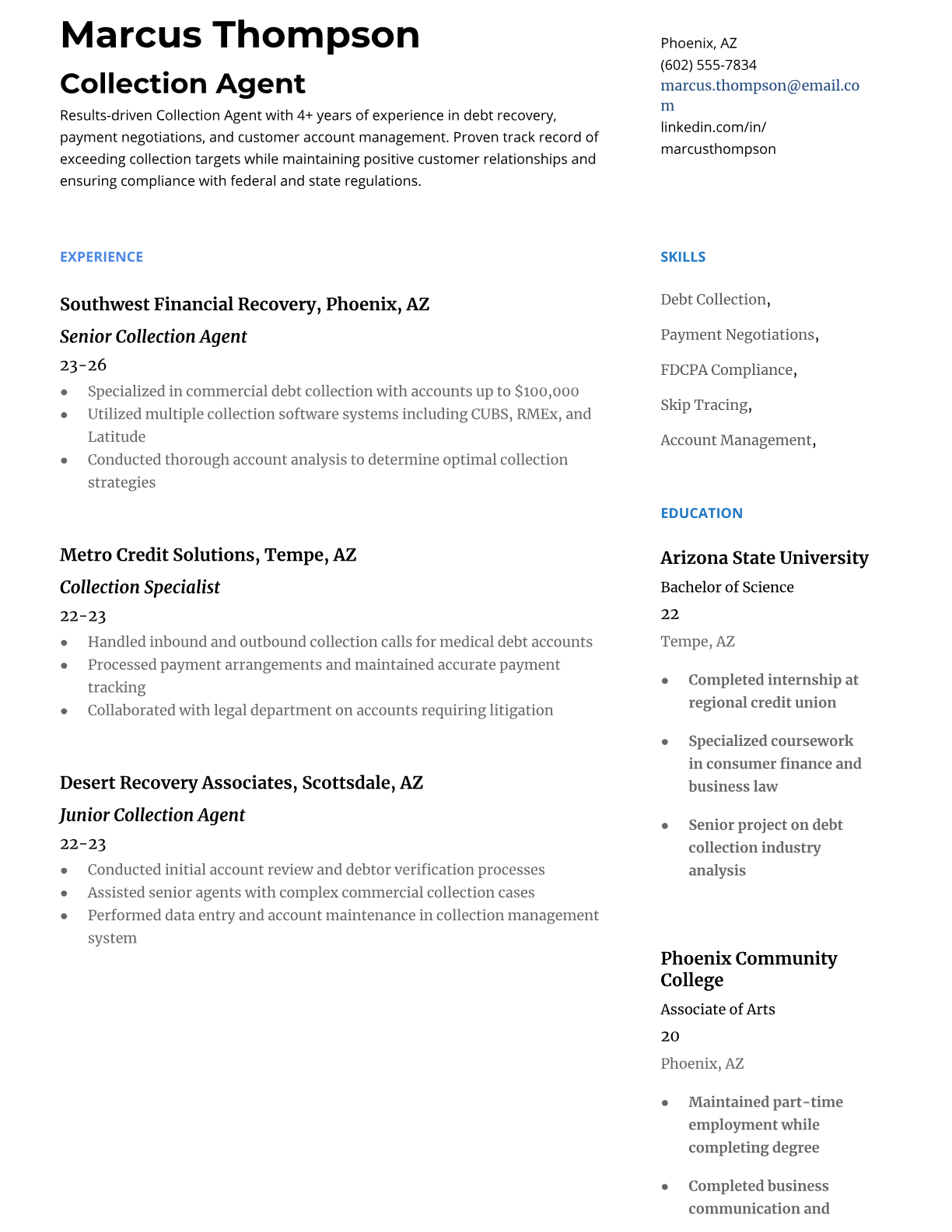 Collection Agent Resume Templates - ATS-Optimized for Debt Recovery Jobs