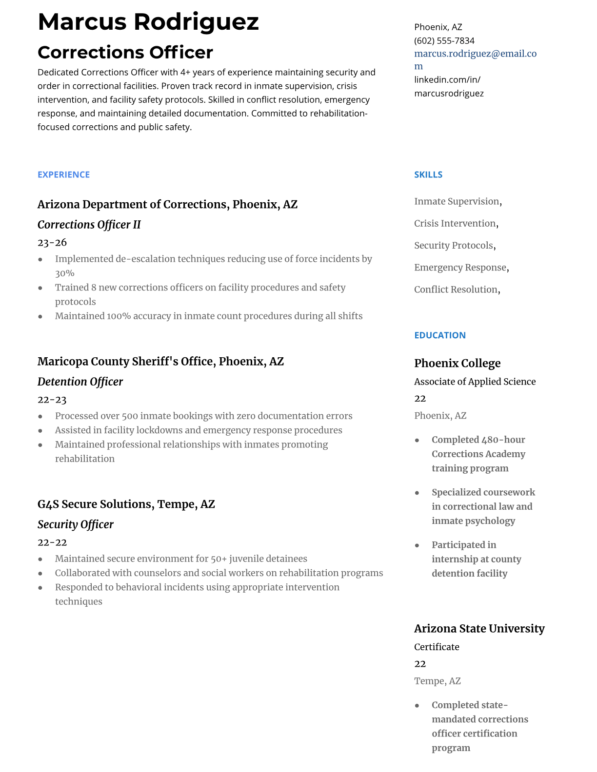 Corrections Officer Resume Templates - ATS-Optimized for Law Enforcement