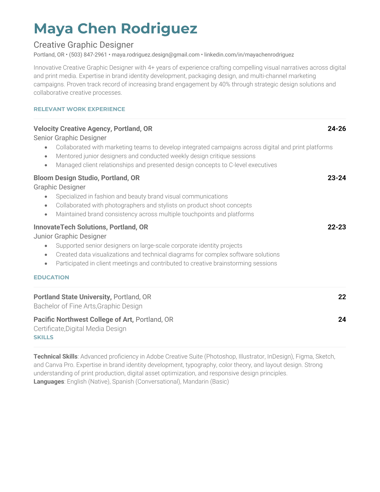 Creative Graphic Designer Resume Templates - ATS-Optimized