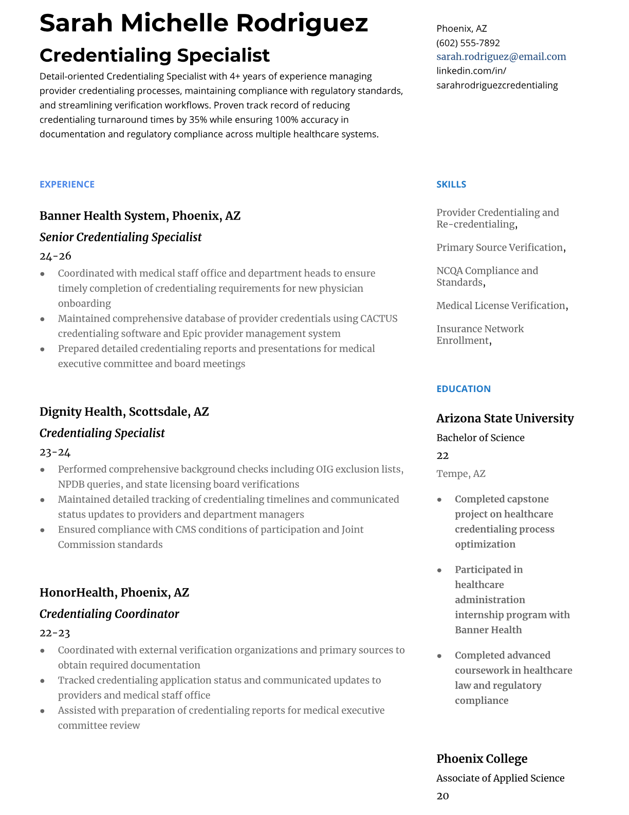 Credentialing Specialist Resume Templates - ATS-Optimized