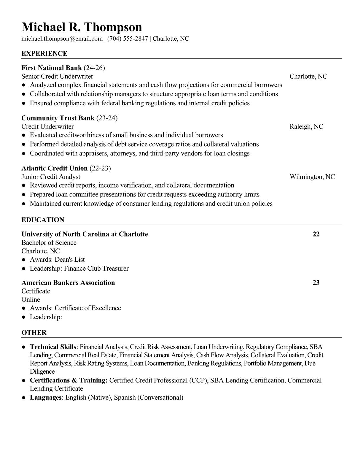 Credit Underwriter Resume Templates - Banking & Finance Optimized