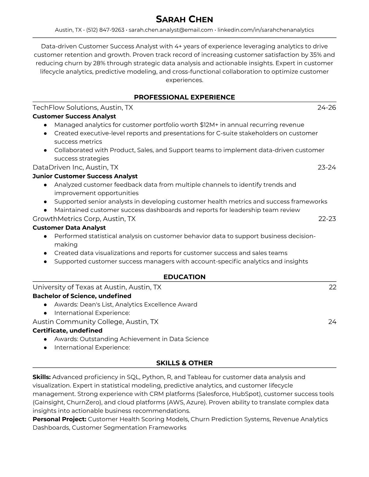 Customer Success Analyst Resume Templates - ATS-Optimized