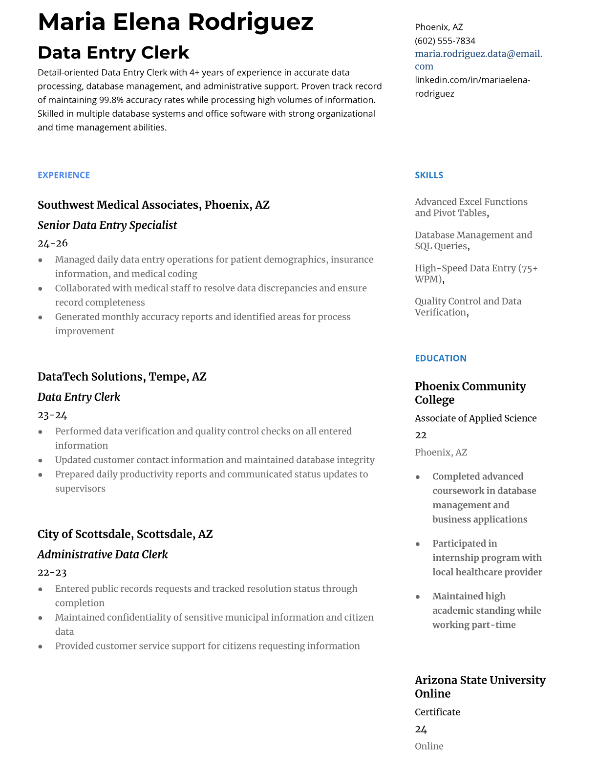 Data Entry Clerk Resume Templates - ATS-Optimized & Professional
