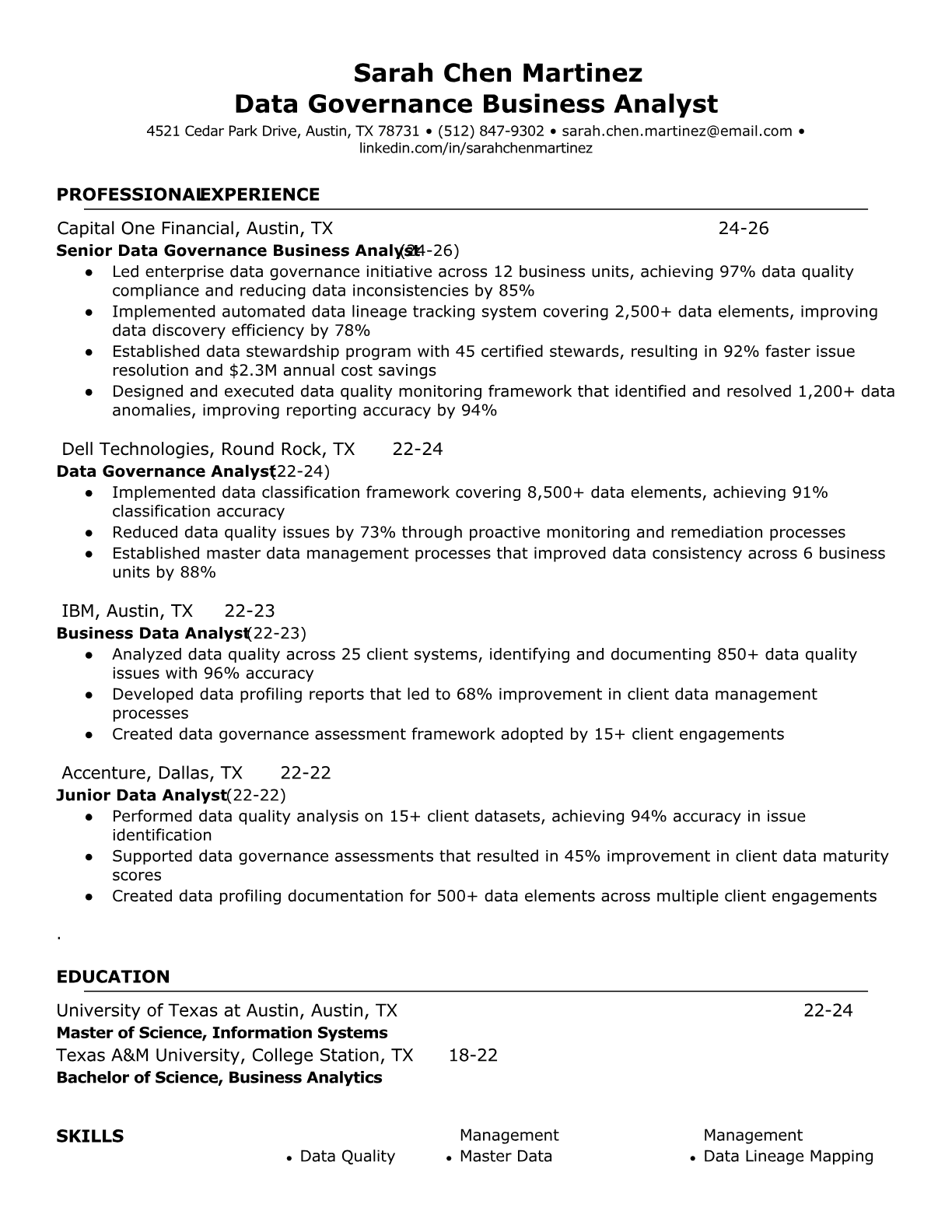 Data Governance Business Analyst Resume Templates - ATS Optimized
