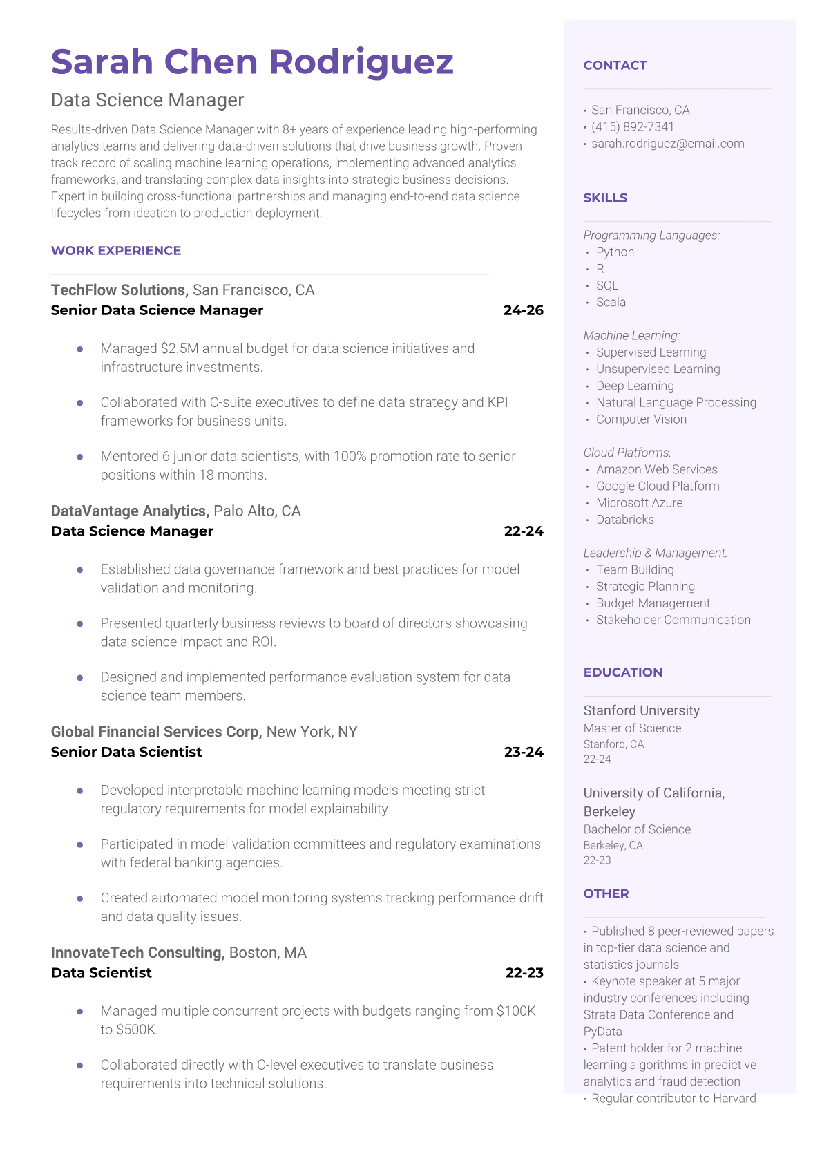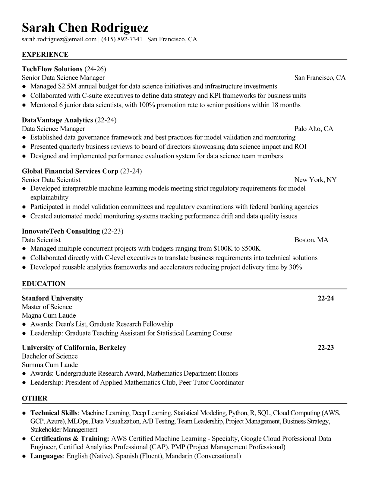 Data Science Manager Resume Templates - ATS-Optimized for Leadership Roles