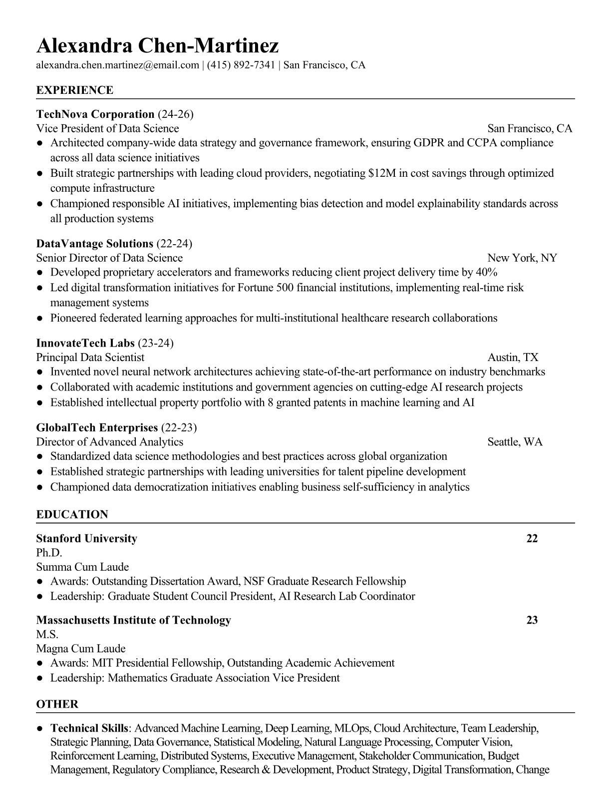 Data Science VP Resume Templates - Executive & Quantitative Formats