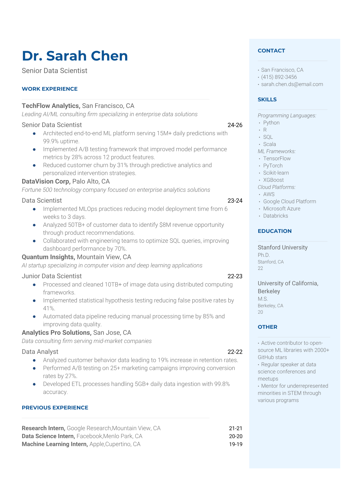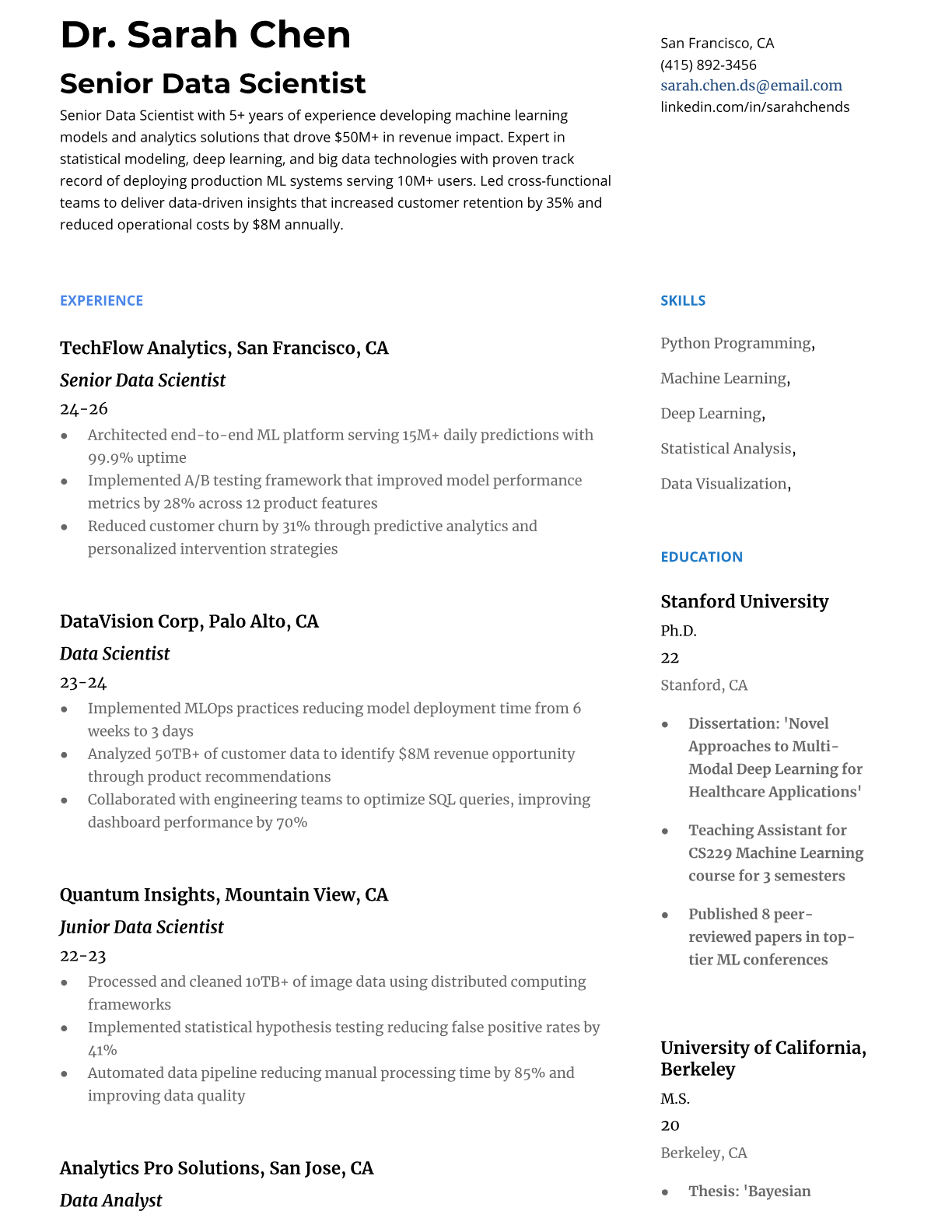 Data Scientist Resume Templates - ATS-Optimized for 2024