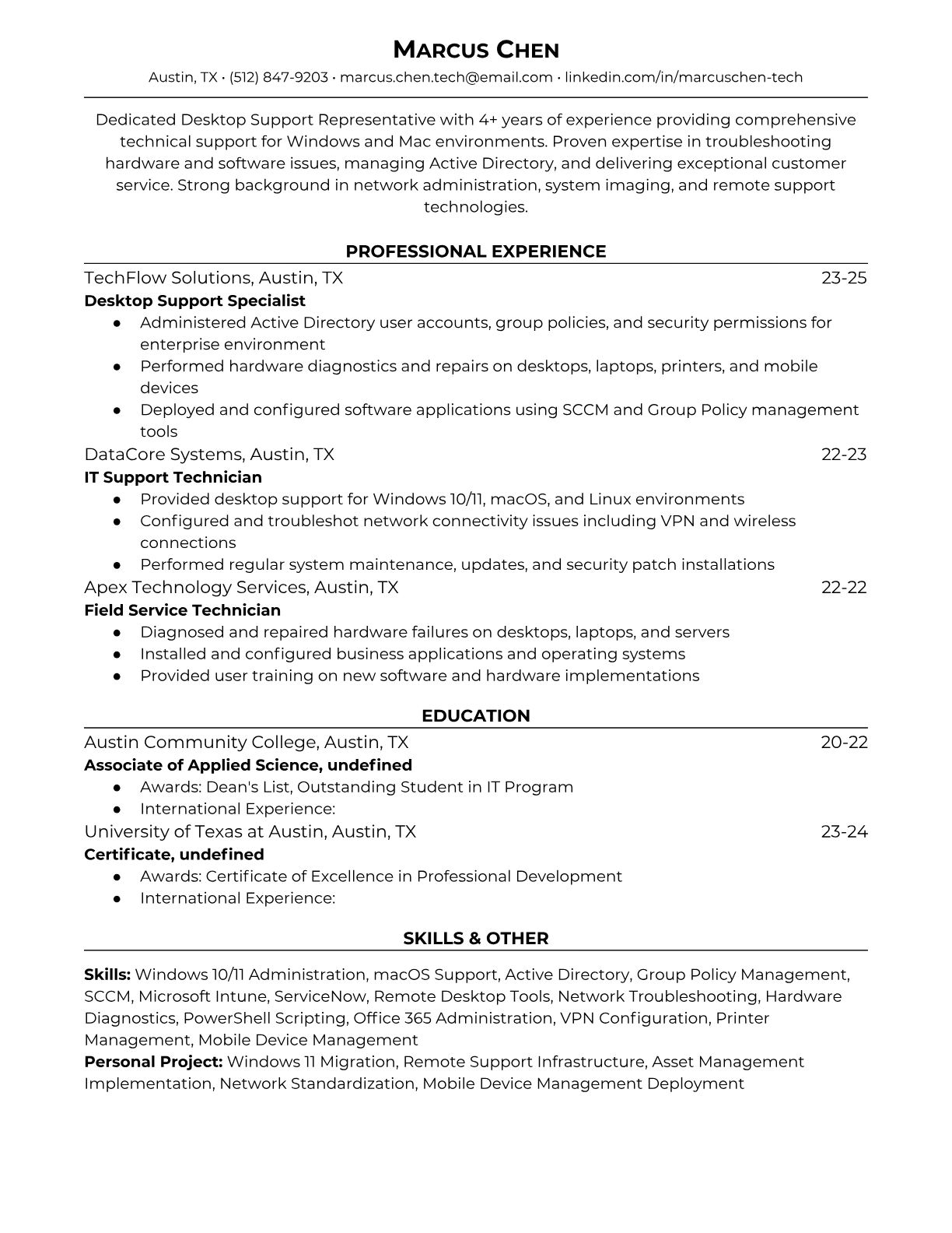 Desktop Support Representative Resume Templates - ATS Optimized