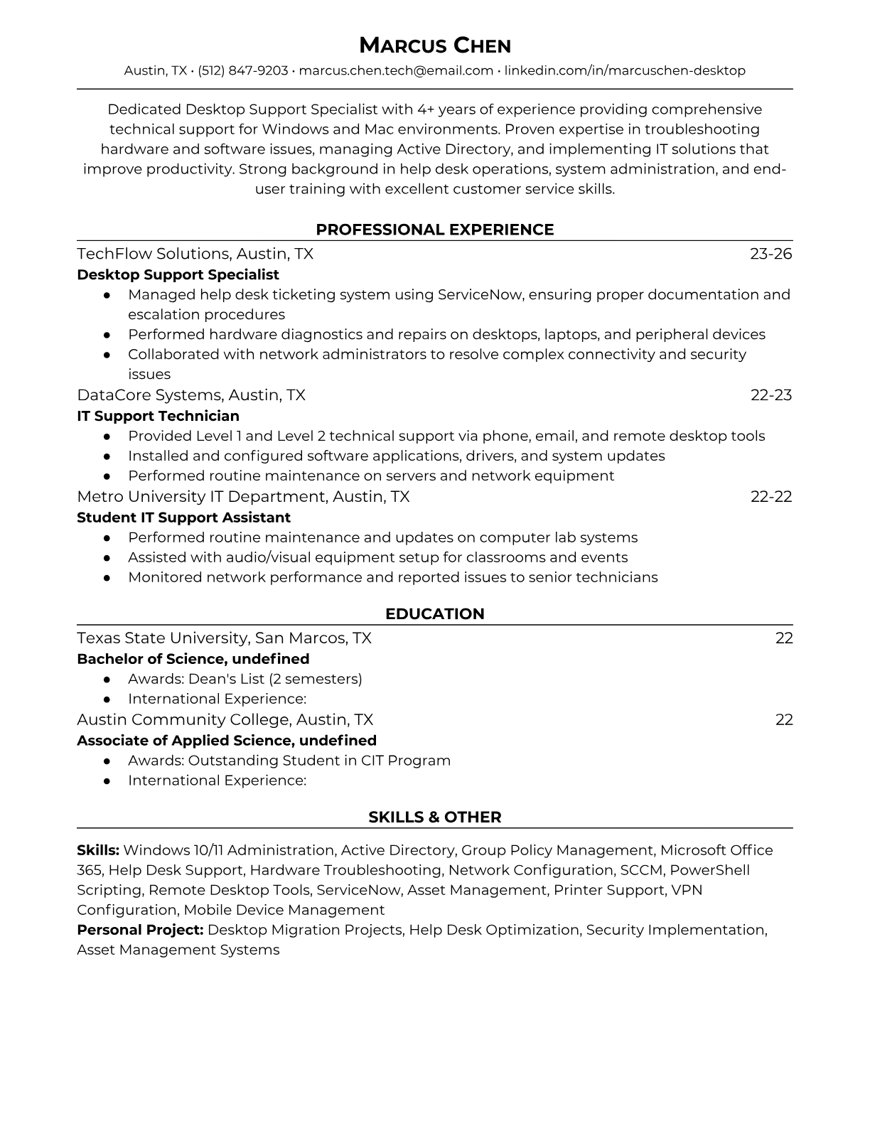 Desktop Support Specialist Resume Templates - ATS-Optimized