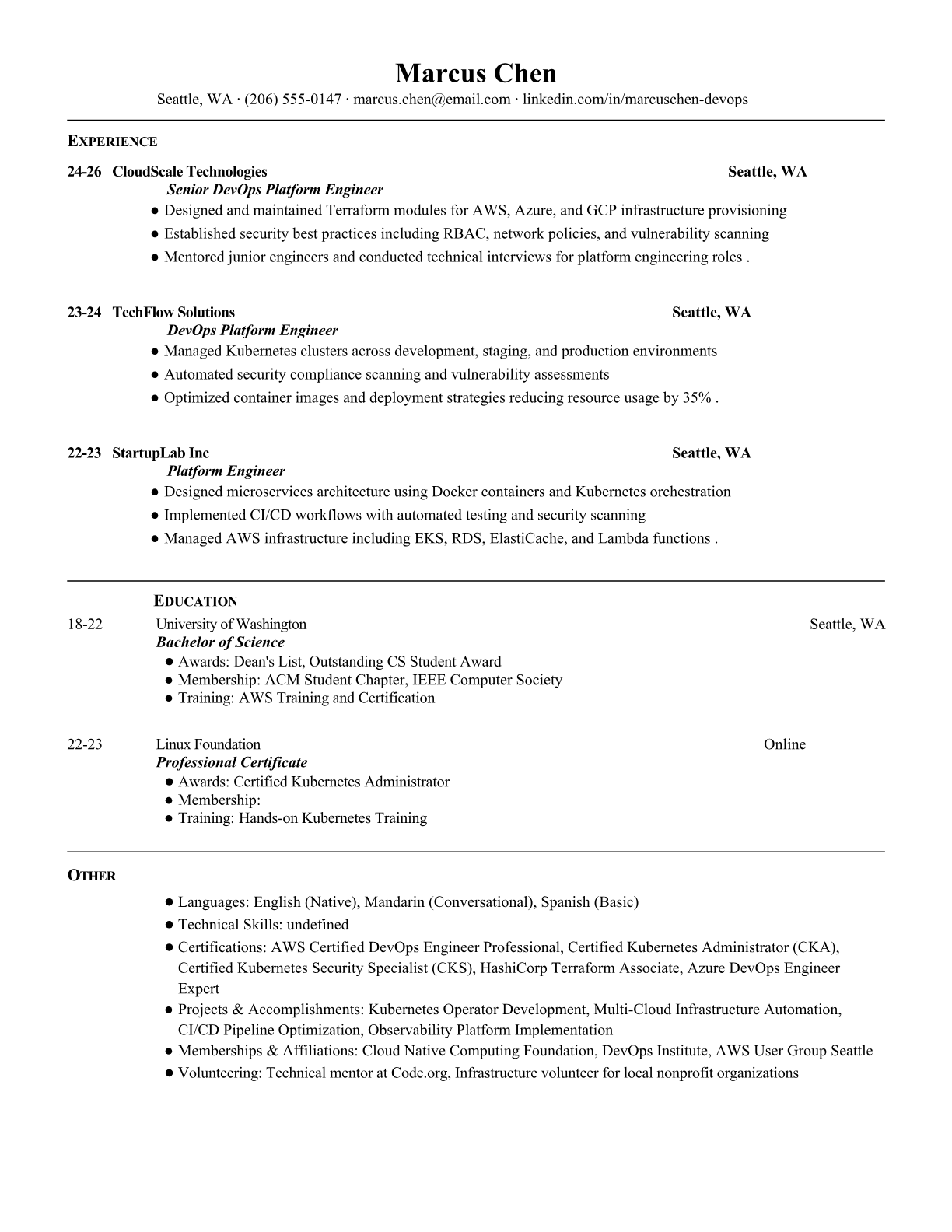 DevOps Platform Engineer Resume Templates - ATS-Optimized