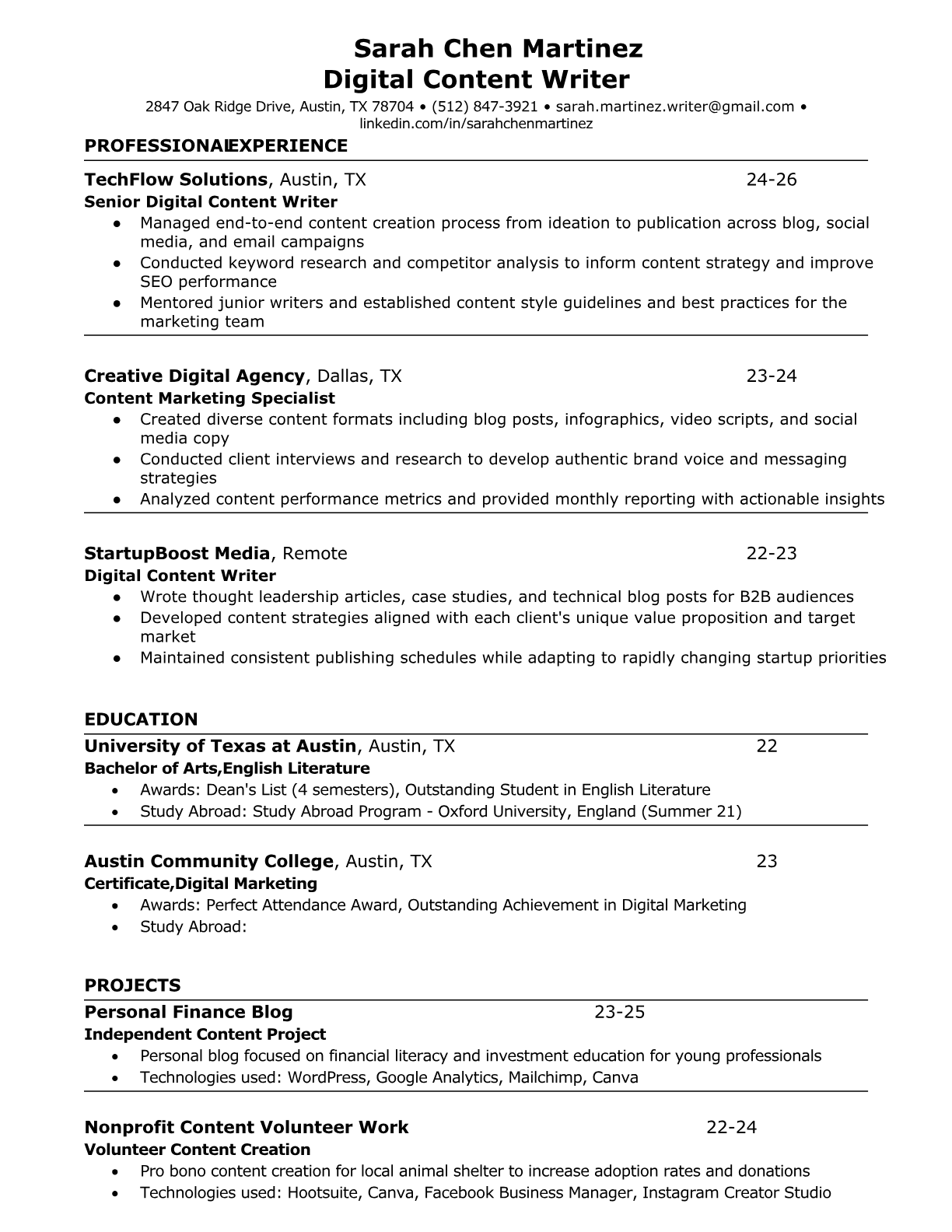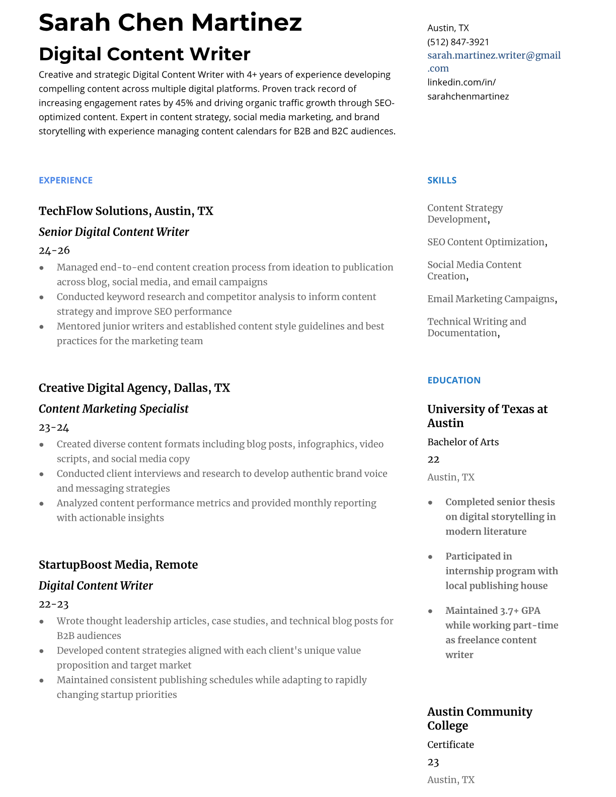 Professional Digital Content Writer resume templates optimized for ATS systems. Includes SEO, social media, and content marketing keywords. Instant download.