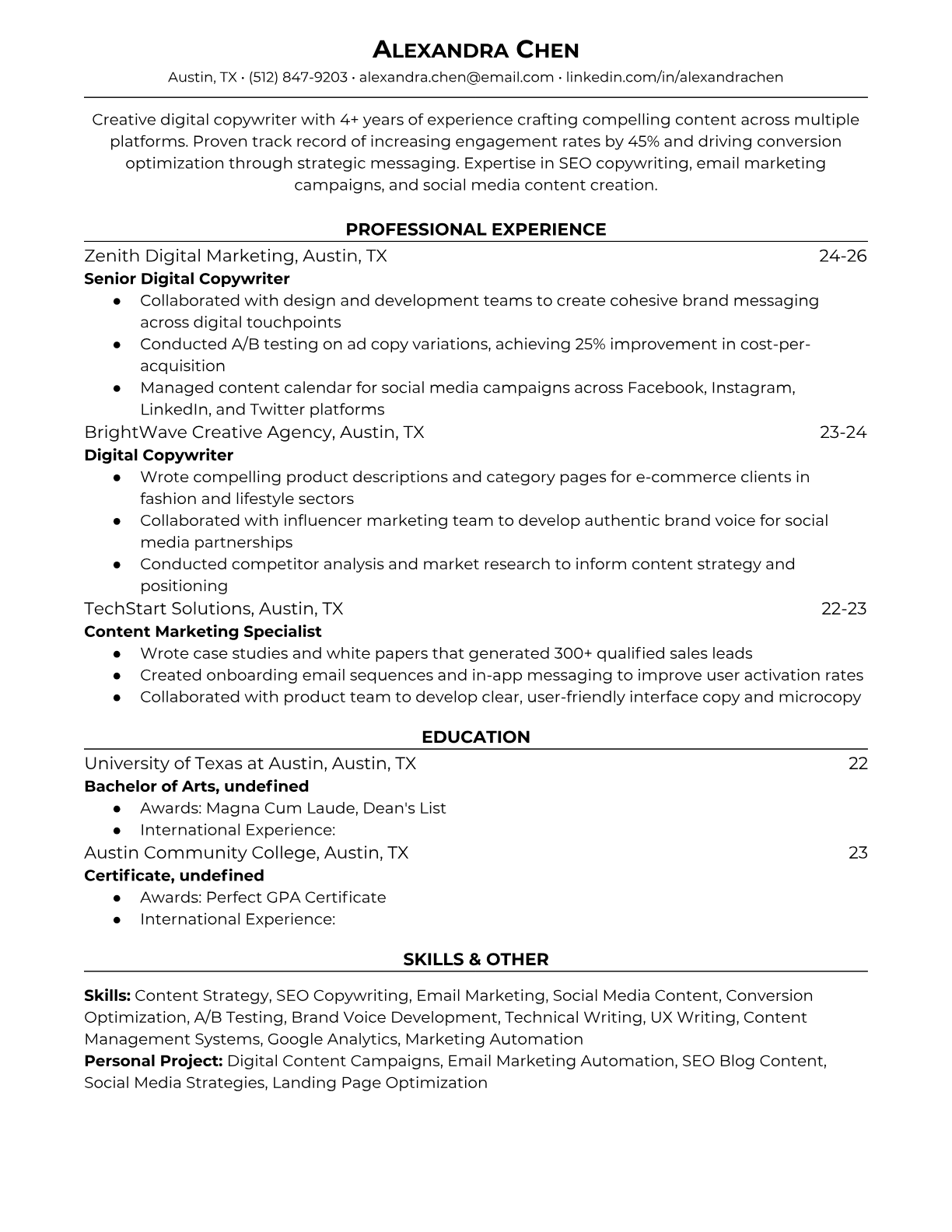 Digital Copywriter Resume Templates - ATS-Optimized for Marketing Roles