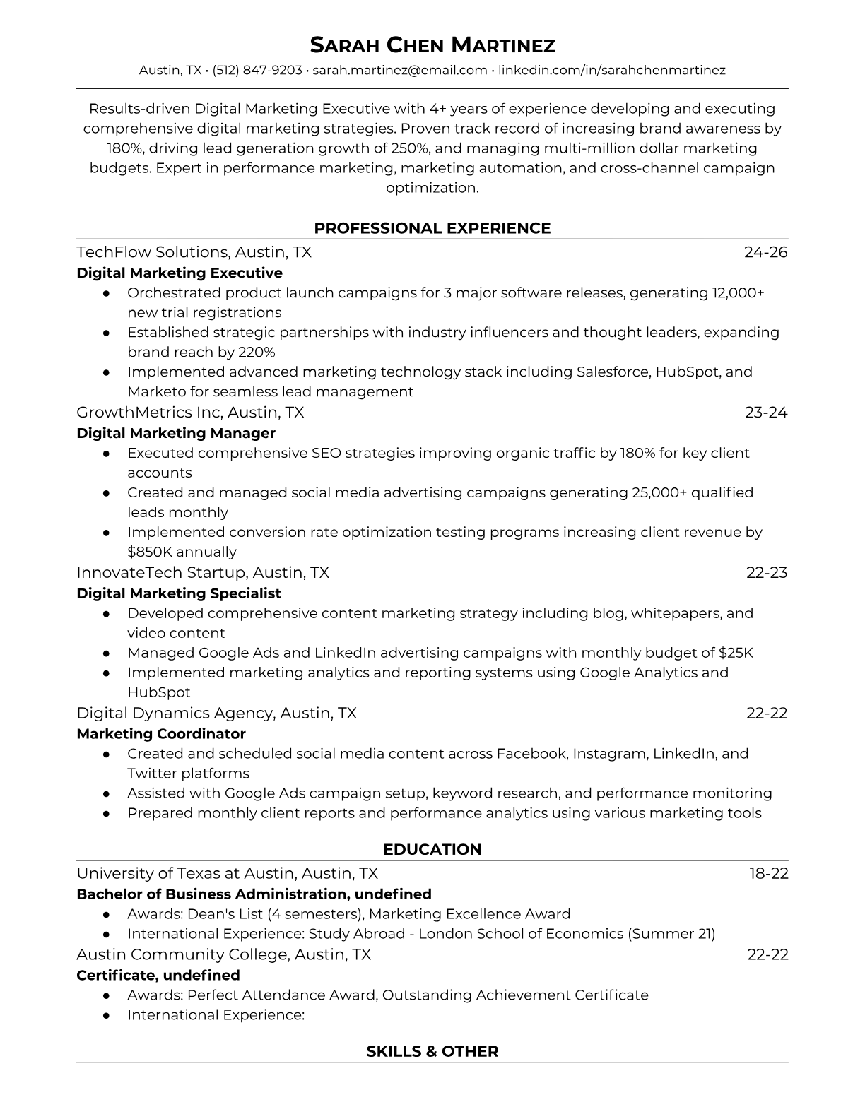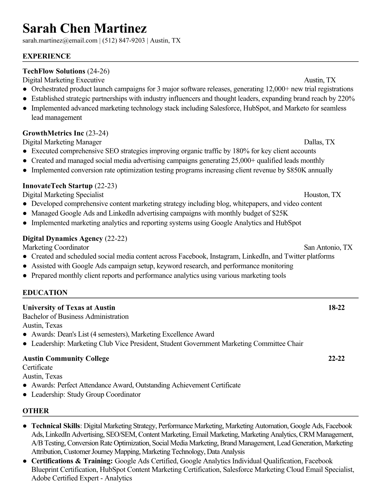Digital Marketing Executive Resume Templates - ATS-Optimized
