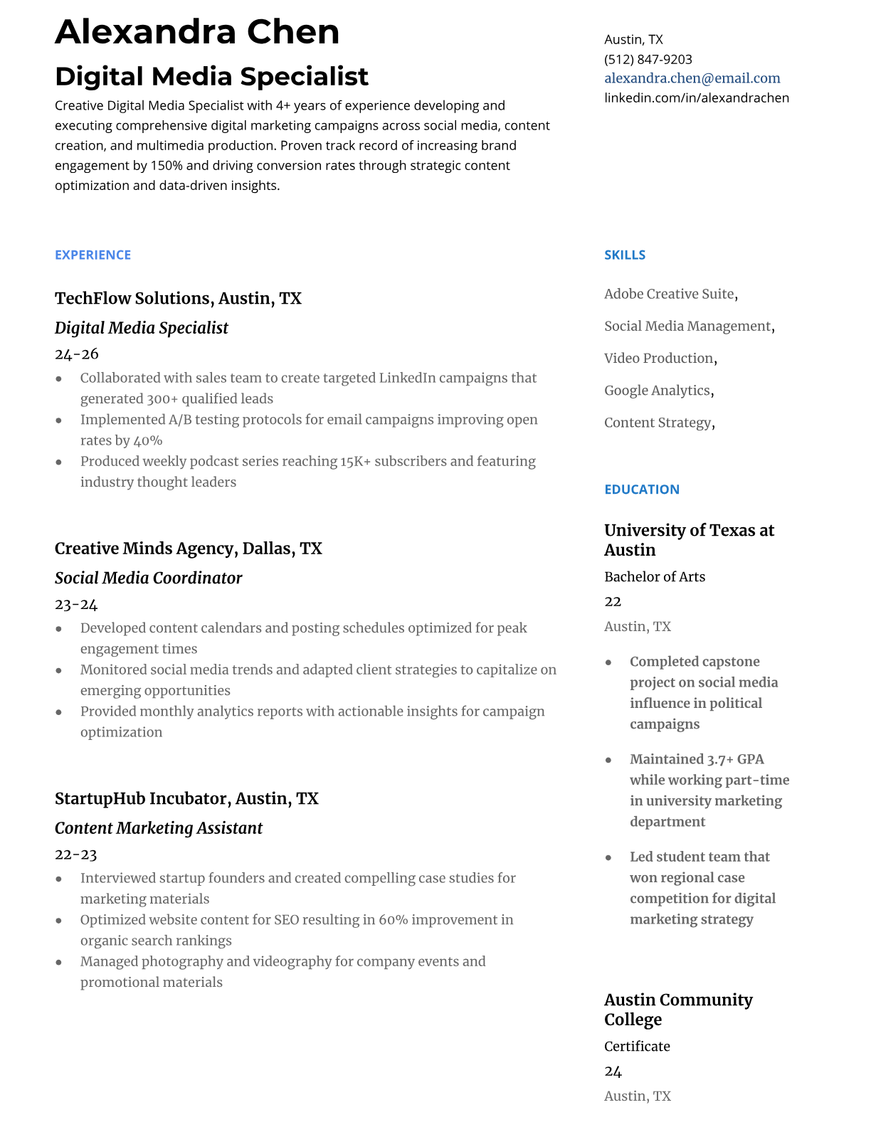 Digital Media Specialist Resume Templates - ATS-Optimized