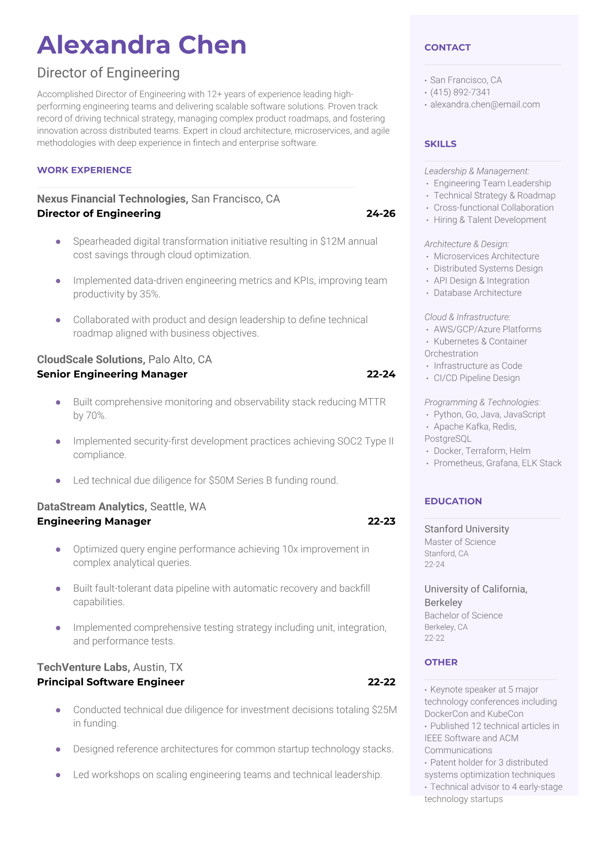 Director of Engineering Resume Templates - Executive & Modern Formats