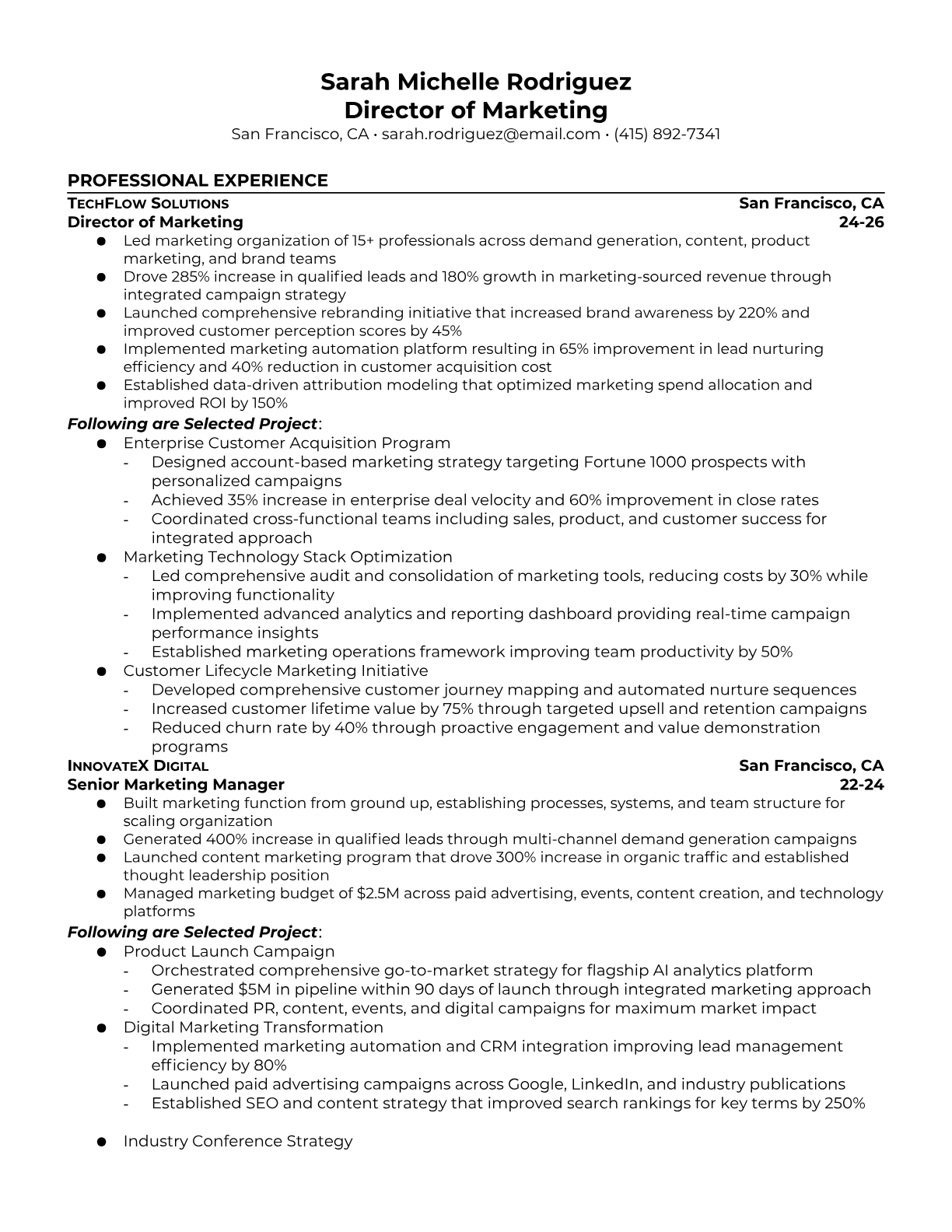 Director of Marketing Resume Templates - Executive & Leadership Formats