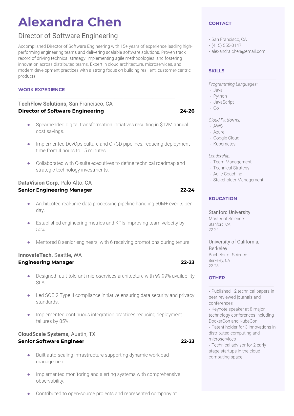 Director of Software Engineering Resume Templates - Executive & Leadership Formats