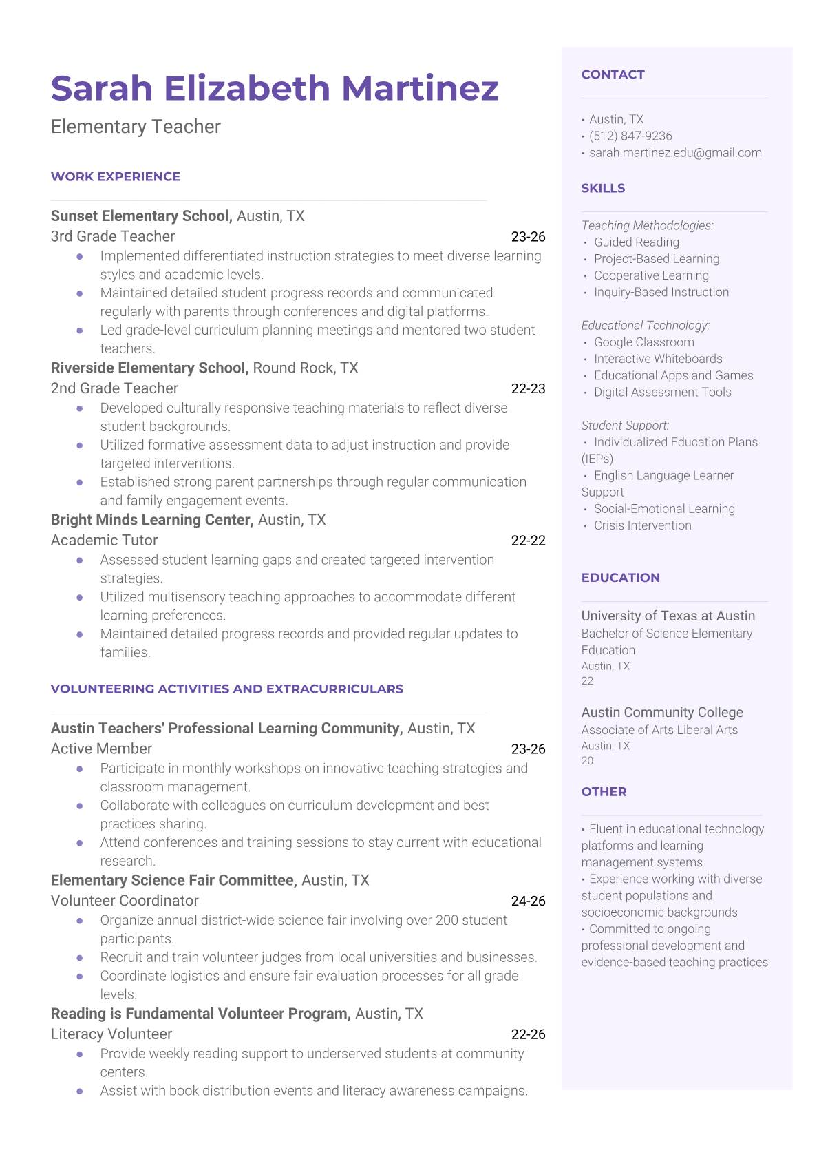 Elementary Teacher Resume Templates - ATS-Optimized for Education