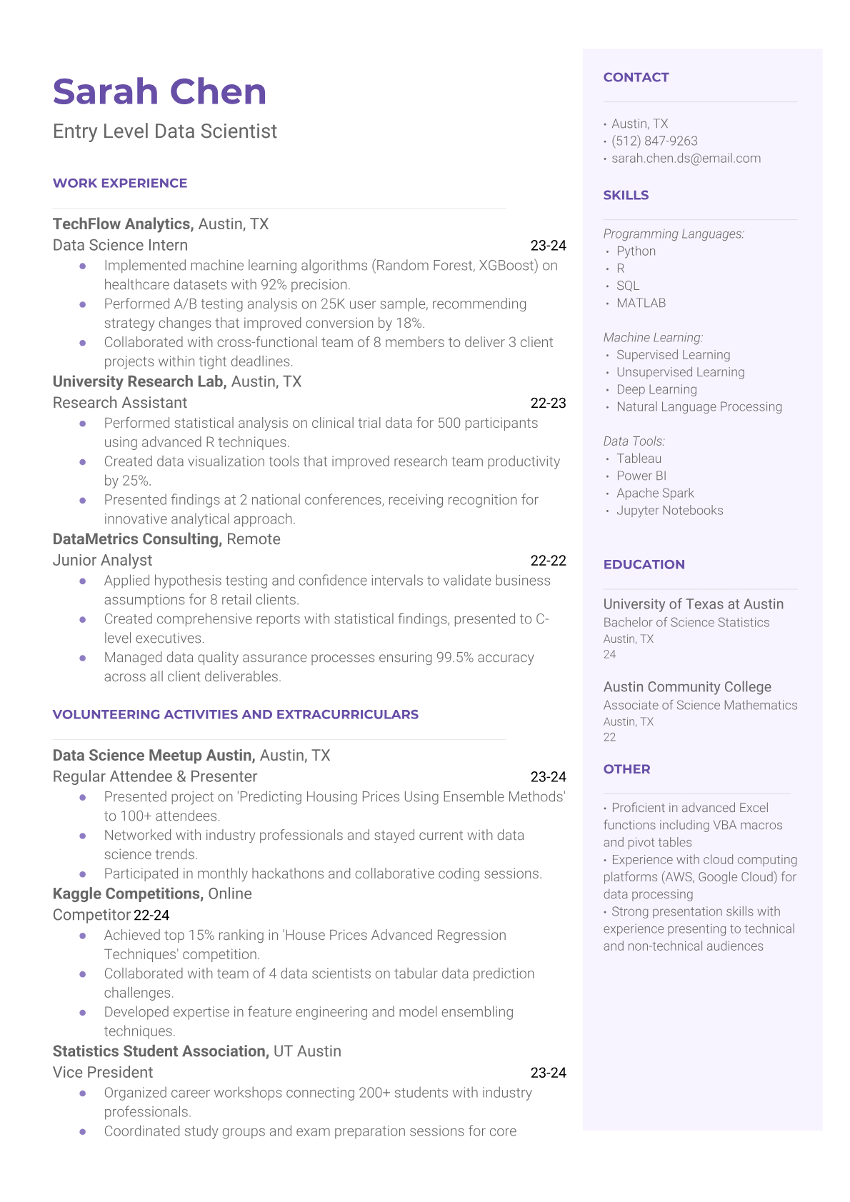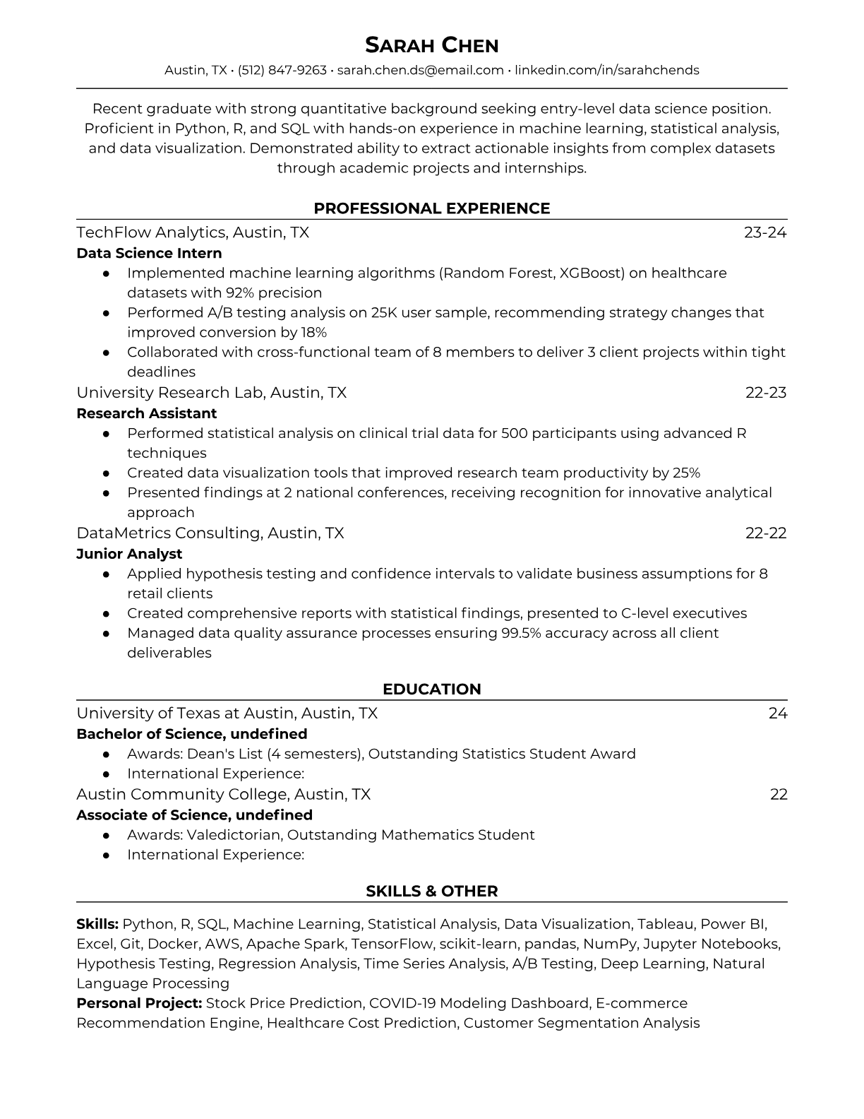 Entry Level Data Scientist Resume Templates - ATS Optimized